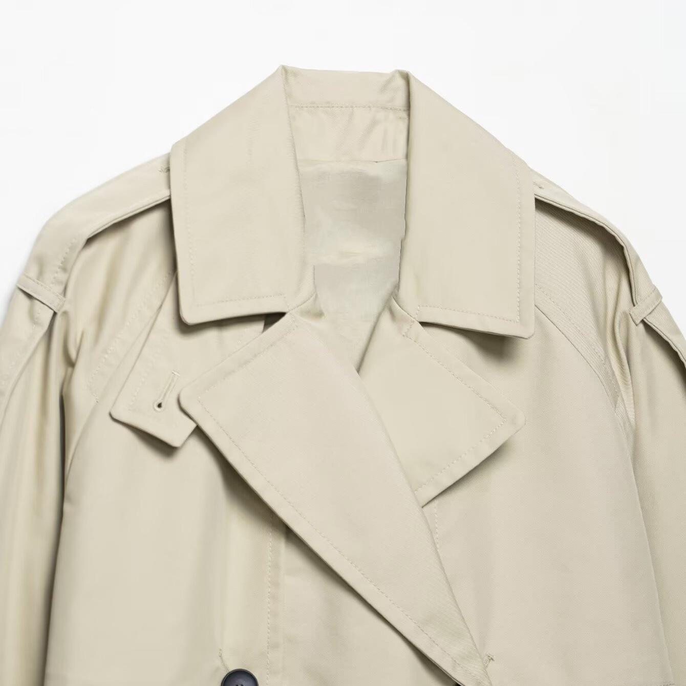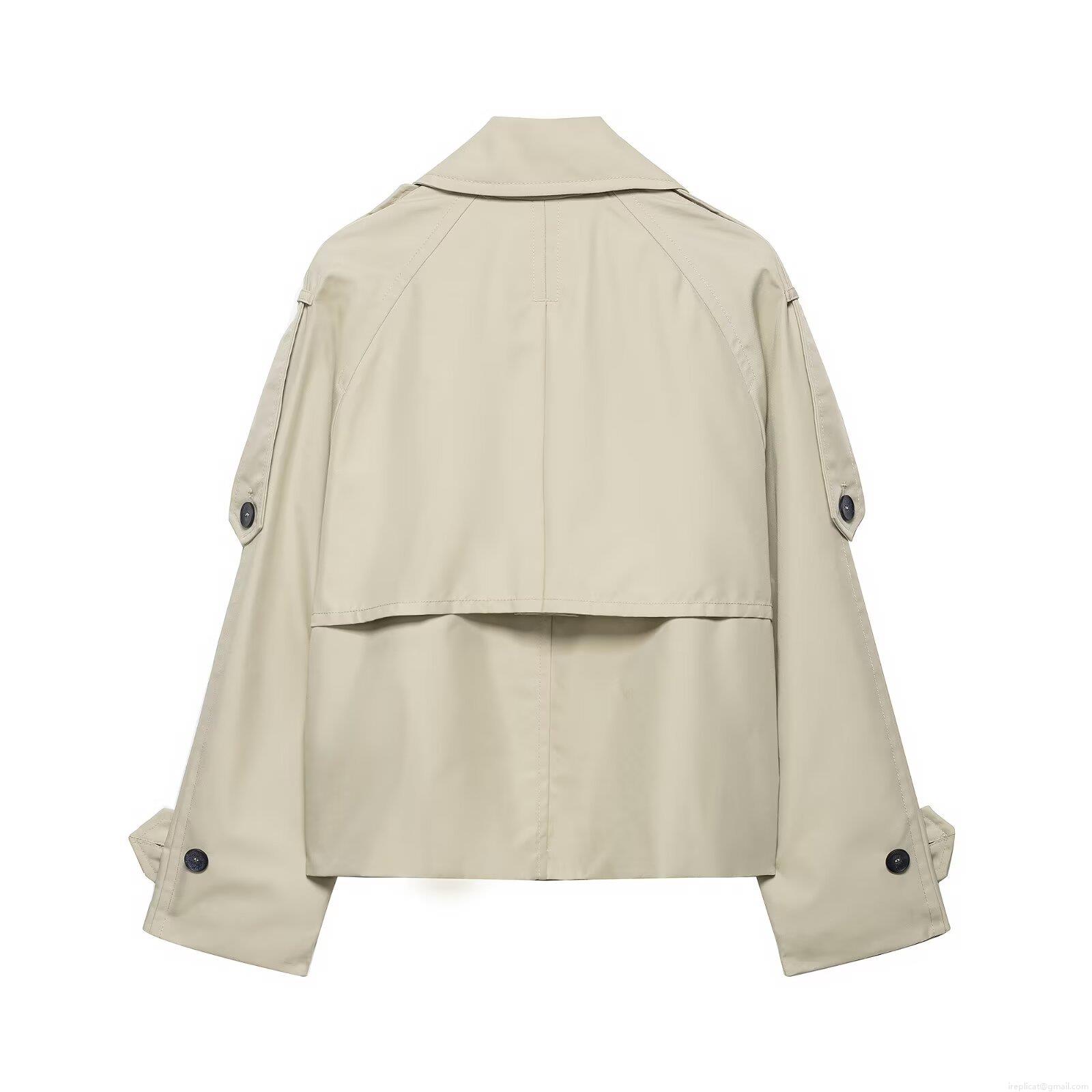 Women's Short Trench Coat Double Breasted Water Resistant 100% Polyester British Style Fashion Commuter Jacket For Autumn