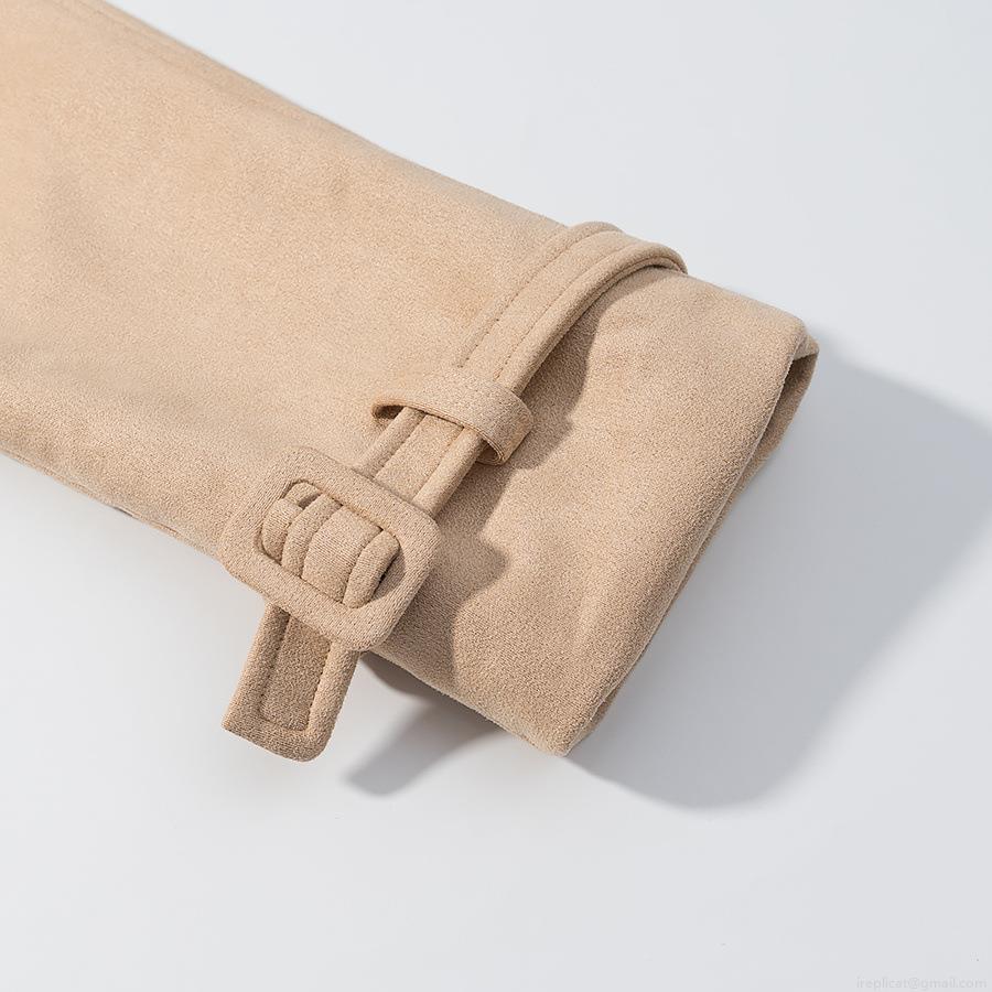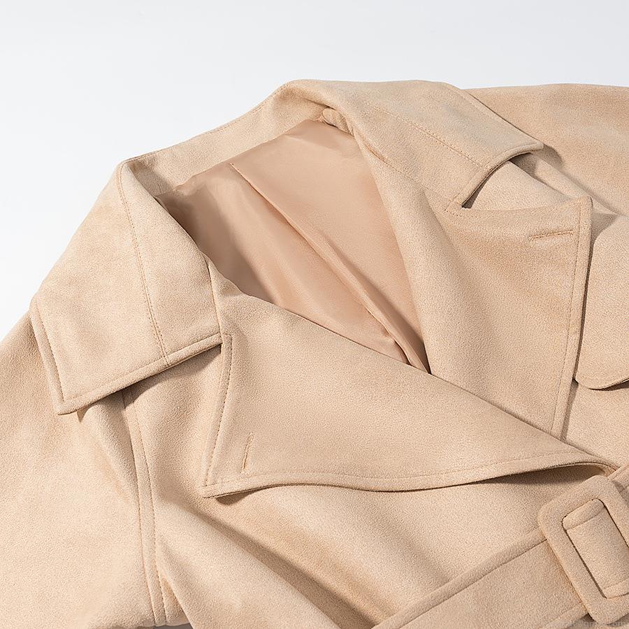 • Women's Short Trench Coat Faux Suede Belted Jacket With Suit Collar Solid Color Loose Fit Casual Outwear For Autumn Office Lady