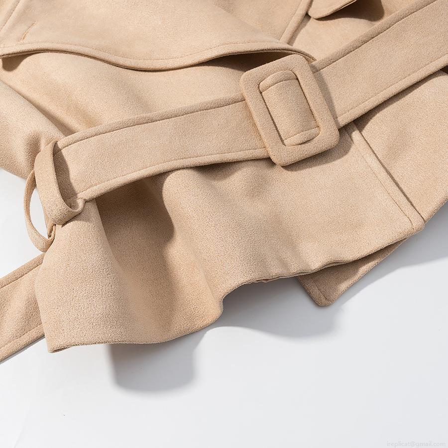 Women's Short Trench Coat Faux Suede Belted Jacket With Suit Collar Solid Color Loose Fit Casual Outwear For Autumn Office Lady