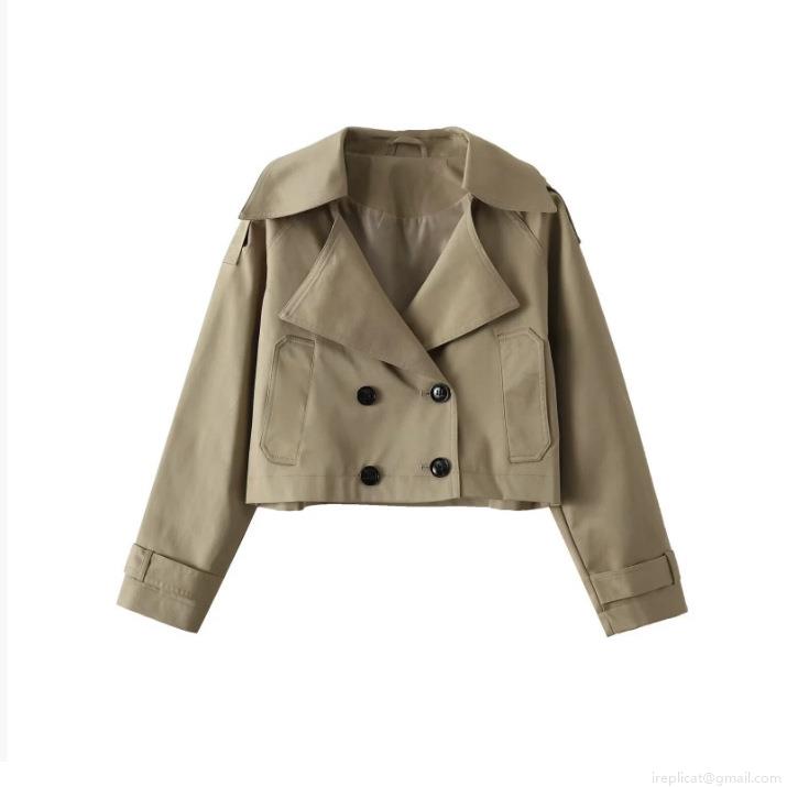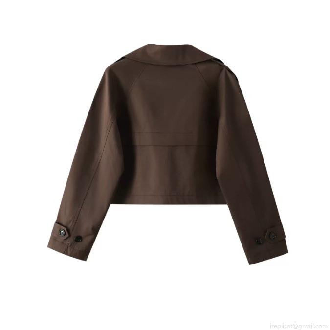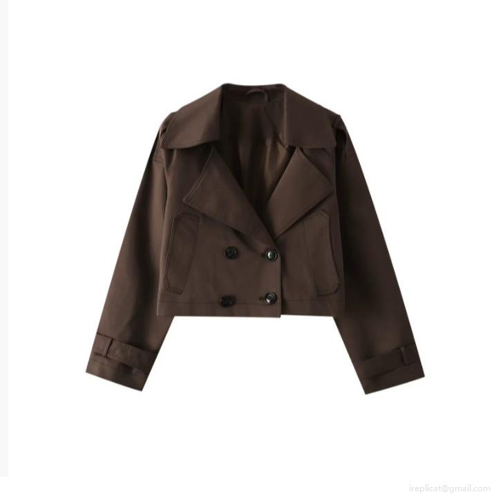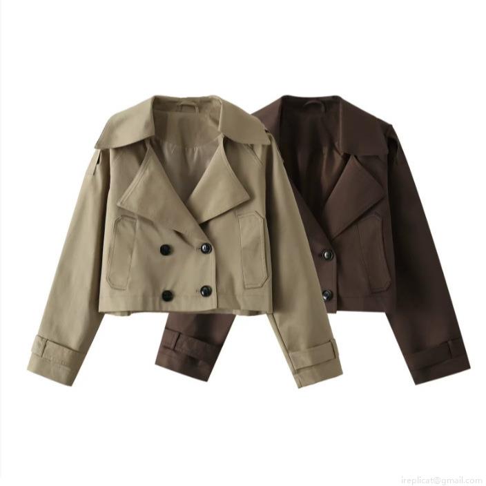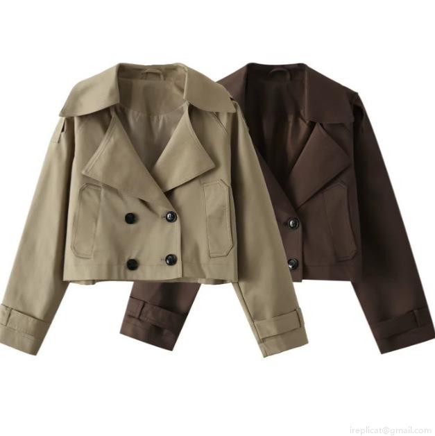 Women's Short Trench Coat Polyester Cotton Blend Double Breasted Lapel Crop Jacket Khaki Dark Brown Windbreaker Outerwear Casual Fashion For Lady