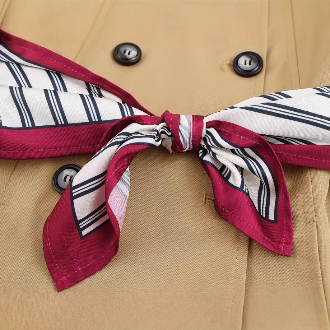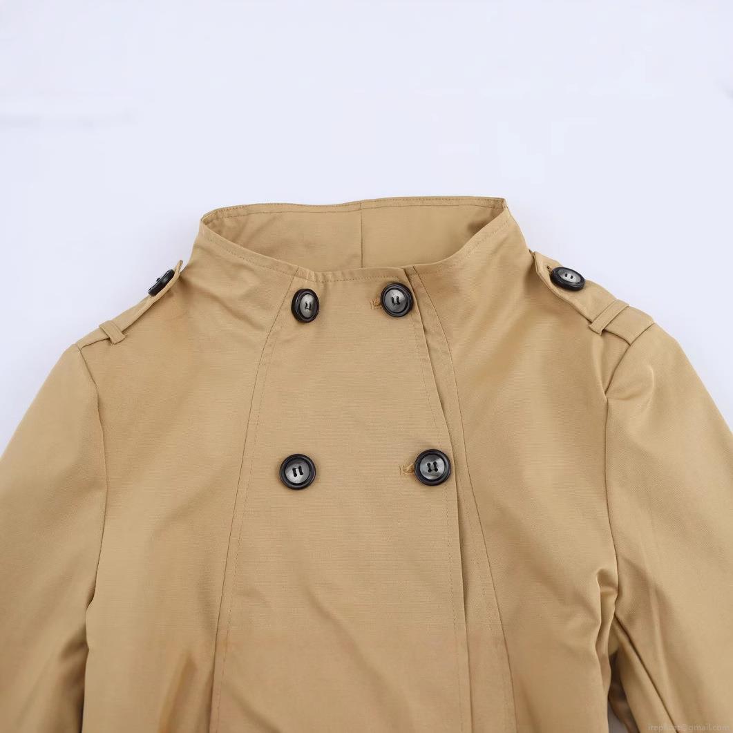 • Women's Short Trench Coat Polyester Woven Double Breasted Jacket With Striped Scarf Belt Epaulettes Stand Collar Long Sleeve Windbreaker Streetwear Outwear For Women