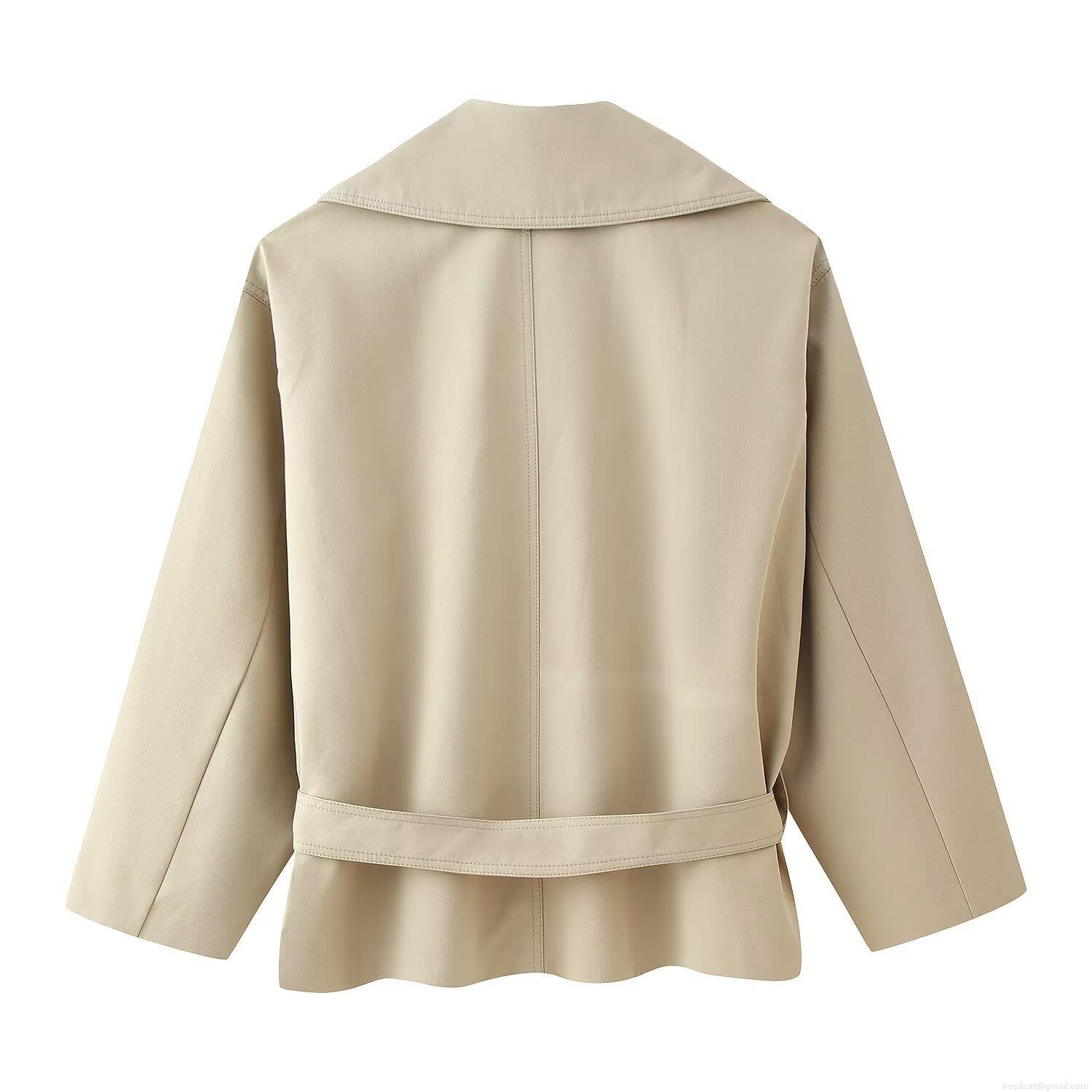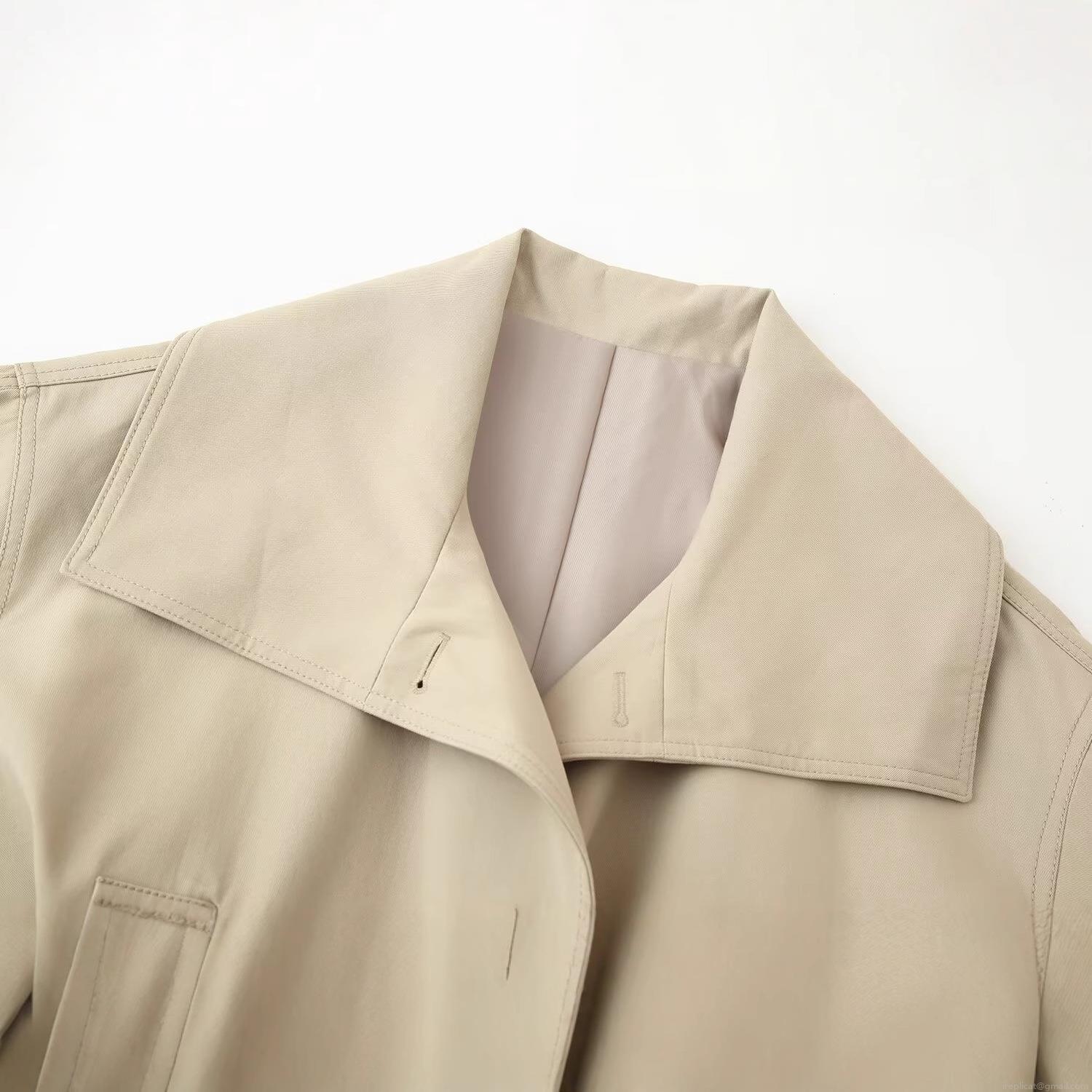 • Women's Short Trench Coat With Belt Polyester Twill Lapel Single Breasted Jacket For Daily Commute Elegant Minimalist Outerwear For Women