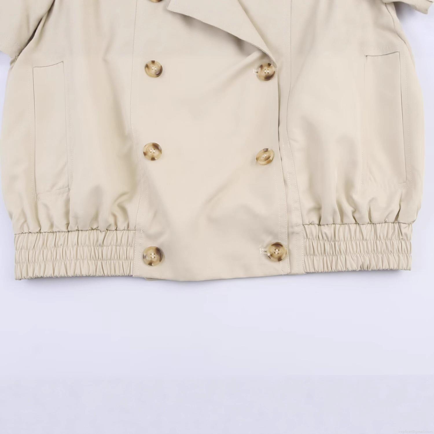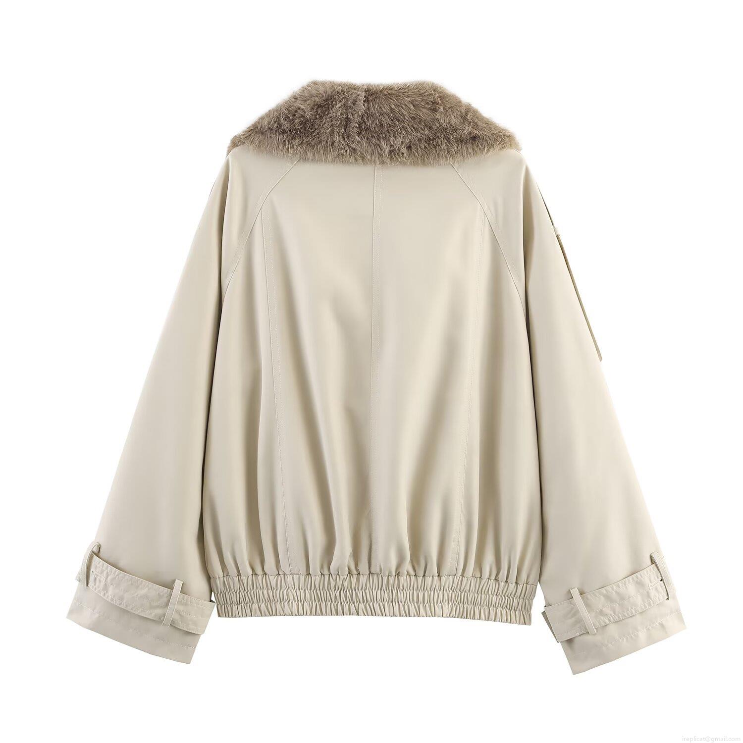 Women's Short Trench Coat With Faux Fur Collar Double Breasted Solid Color Twill Jacket Outerwear For Winter Autumn Street Style