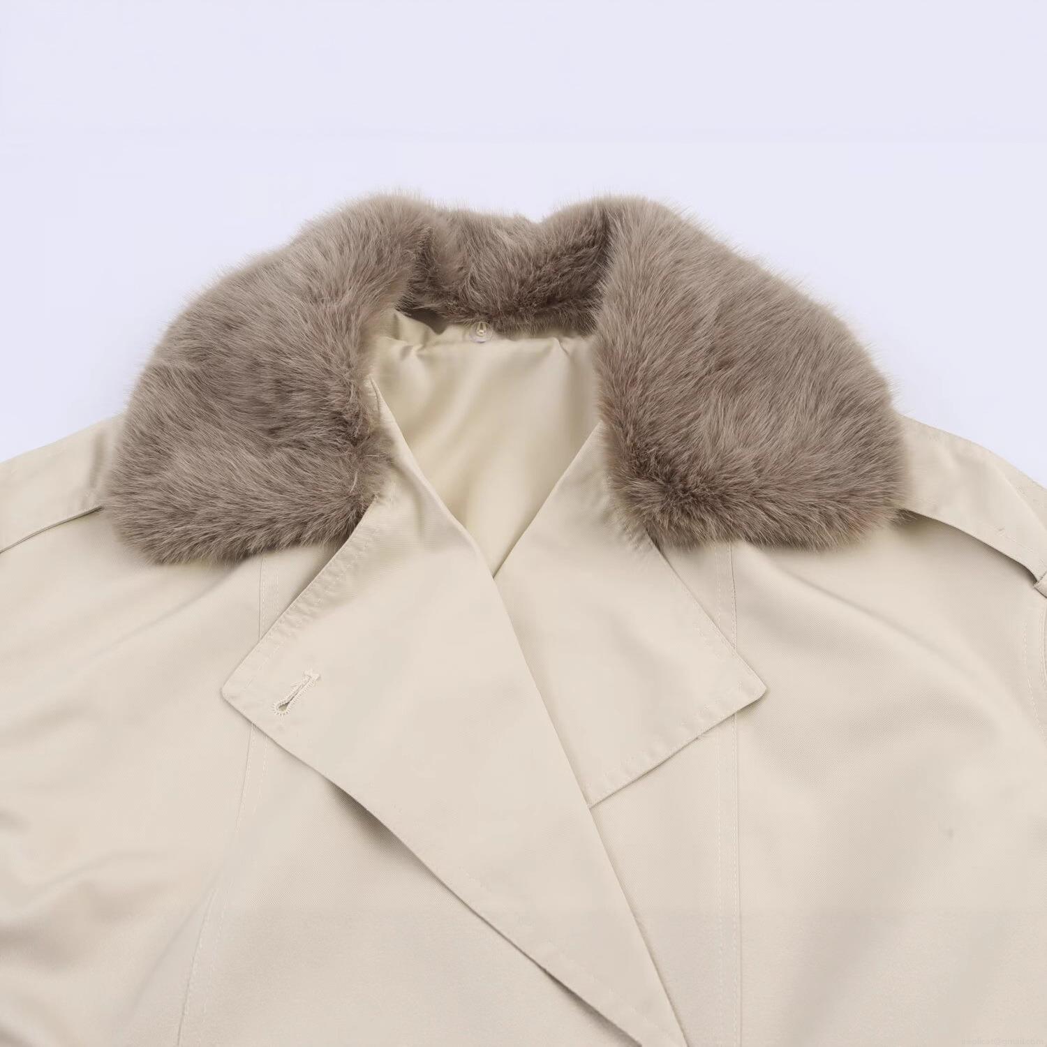 • Women's Short Trench Coat With Faux Fur Collar Double Breasted Solid Color Twill Jacket Outerwear For Winter Autumn Street Style