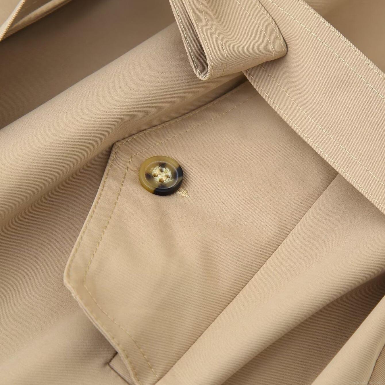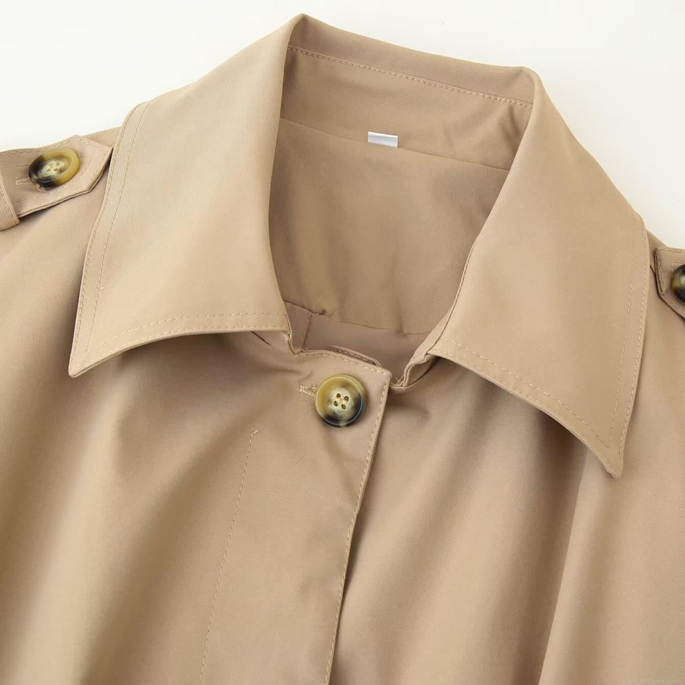 • Women's Short Trench Coat With Waist Belt Autumn Fashion Lapel Long Sleeve Jacket Windbreaker Solid Color Casual Outerwear For Women Khaki White