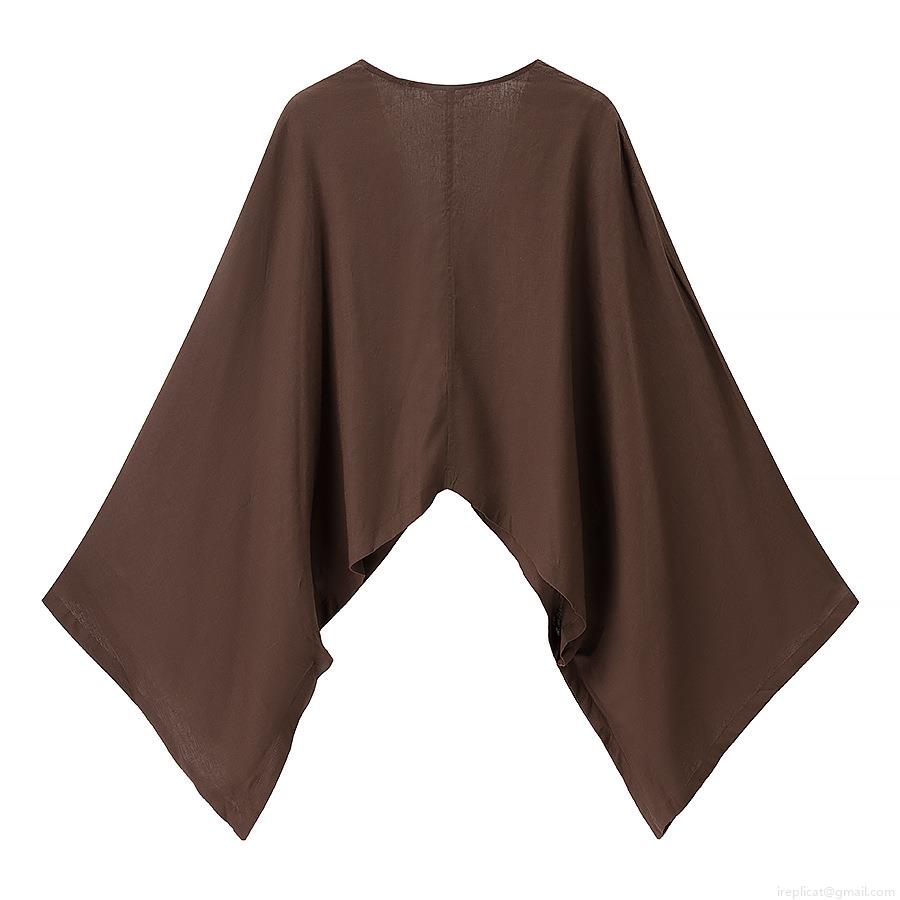 Solid Color, V-neck, Batwing Sleeves, Cape Design