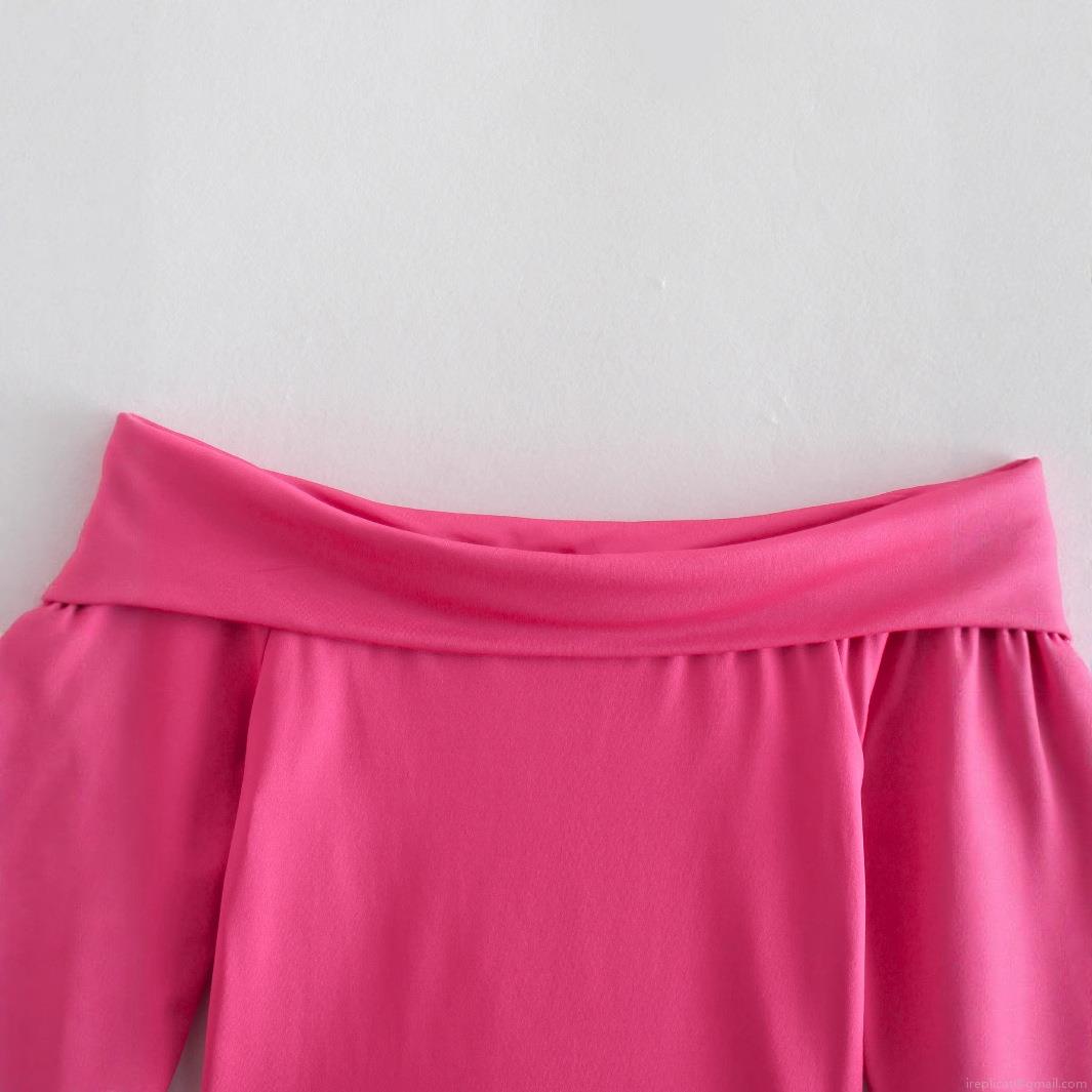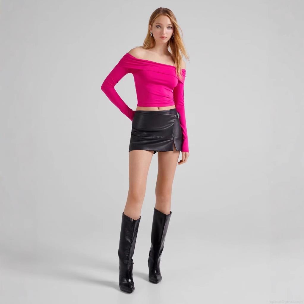 • Sexy Off-Shoulder Long Sleeve Top Women Solid Color Slim Fit One-Word Neck Pullover Streetwear Polyester Casual Tee T-Shirt