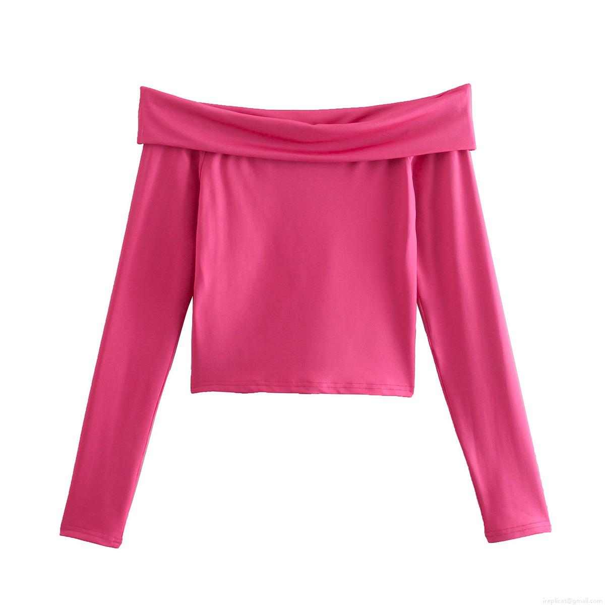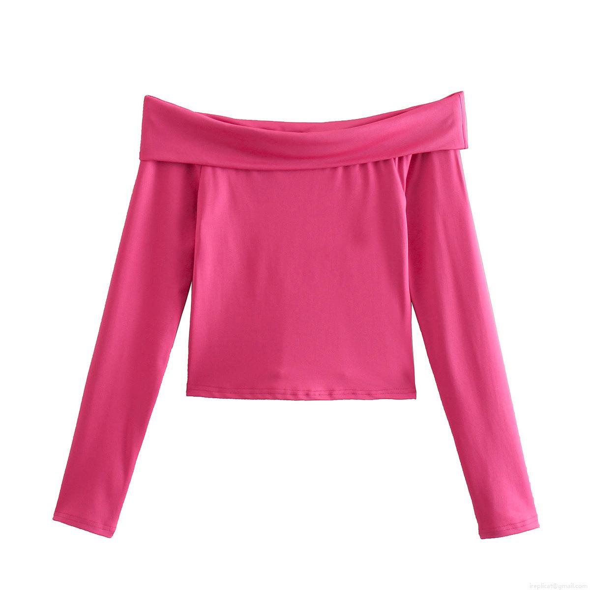 Sexy Off-Shoulder Long Sleeve Top Women Solid Color Slim Fit One-Word Neck Pullover Streetwear Polyester Casual Tee T-Shirt