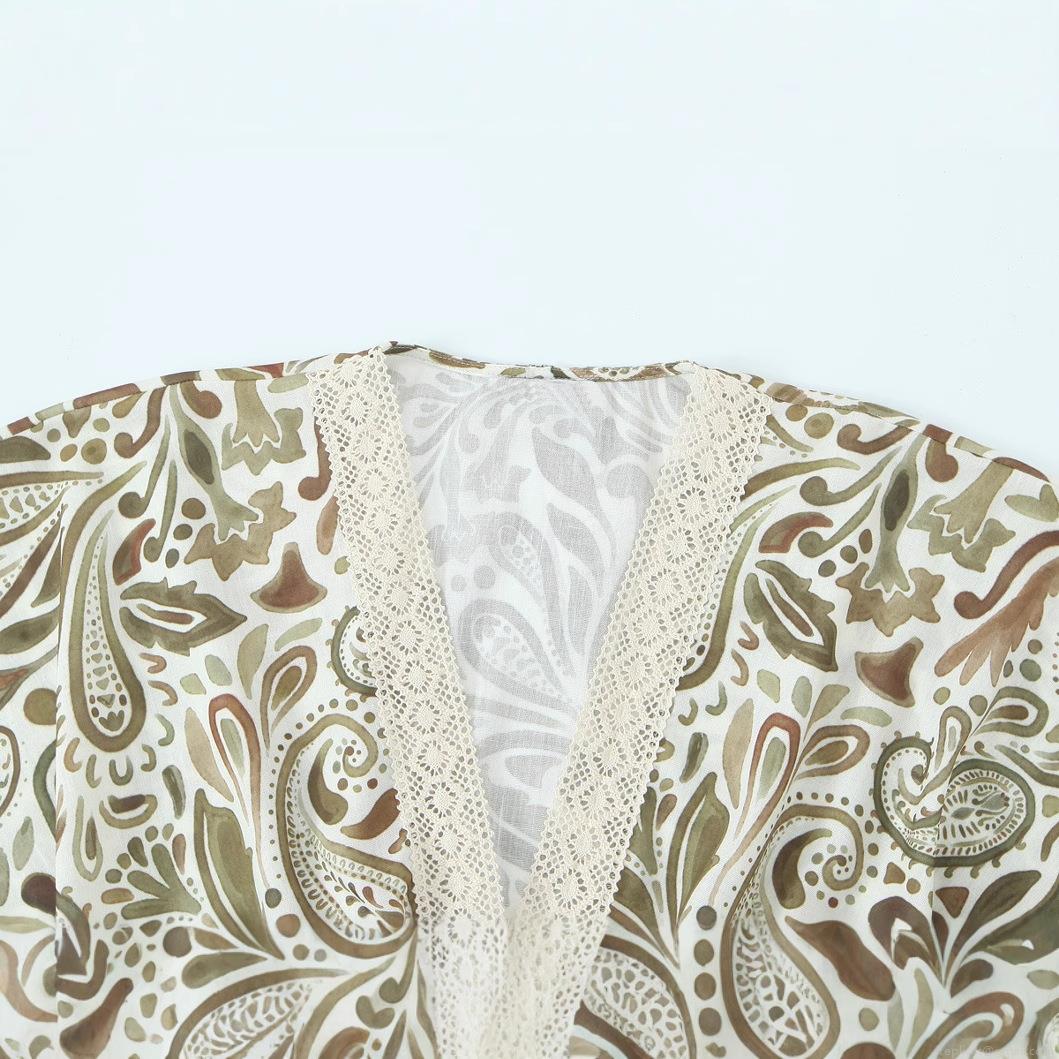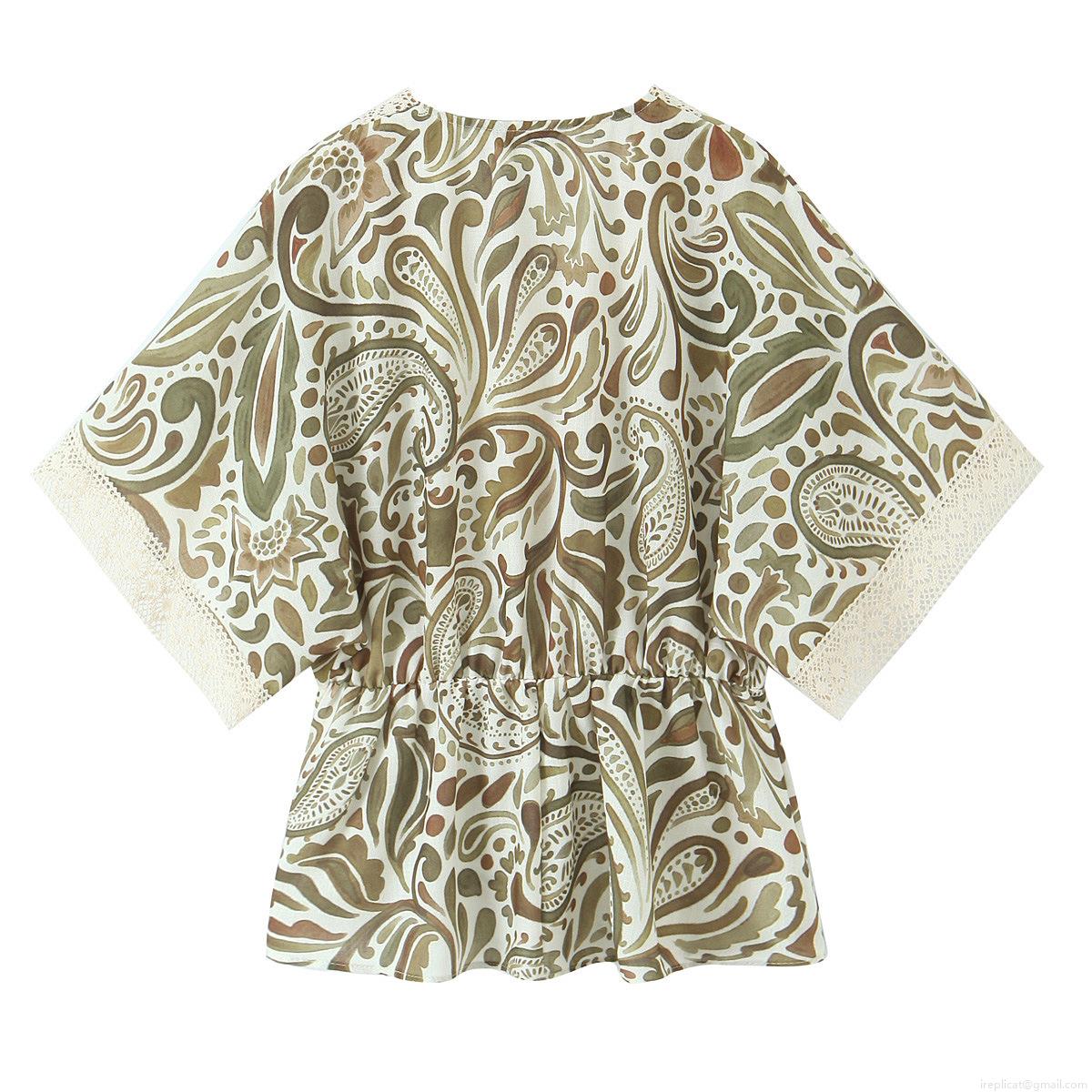 • Women Bohemia Paisley Print Top Polyester Lace Trim V Neck Loose Fit Half Sleeve Breathable Casual Daily Beach Vacation Vintage Ethnic Chic For Lady