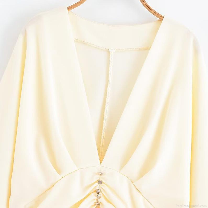 Solid Color, Pleats, Button Decoration, Deep V-neck