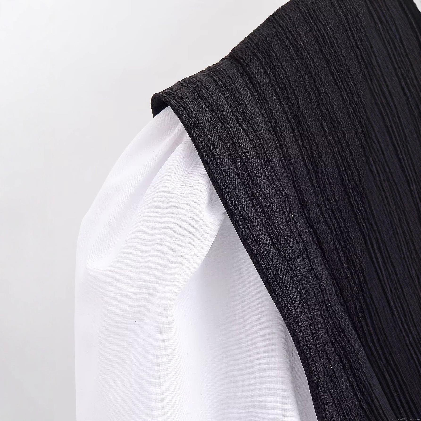 Splice, Pleats, Color Blocking, Fake Two-piece, Lantern Sleeves, Wood Ear Collar