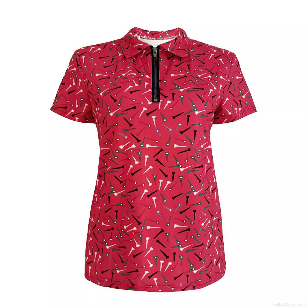 • Women Golf Polo T-Shirt Polyester Breathable Zipper V-Neck Casual Sporty Short Sleeve Top Golf Tee Print Fashionable Outdoor Activewear