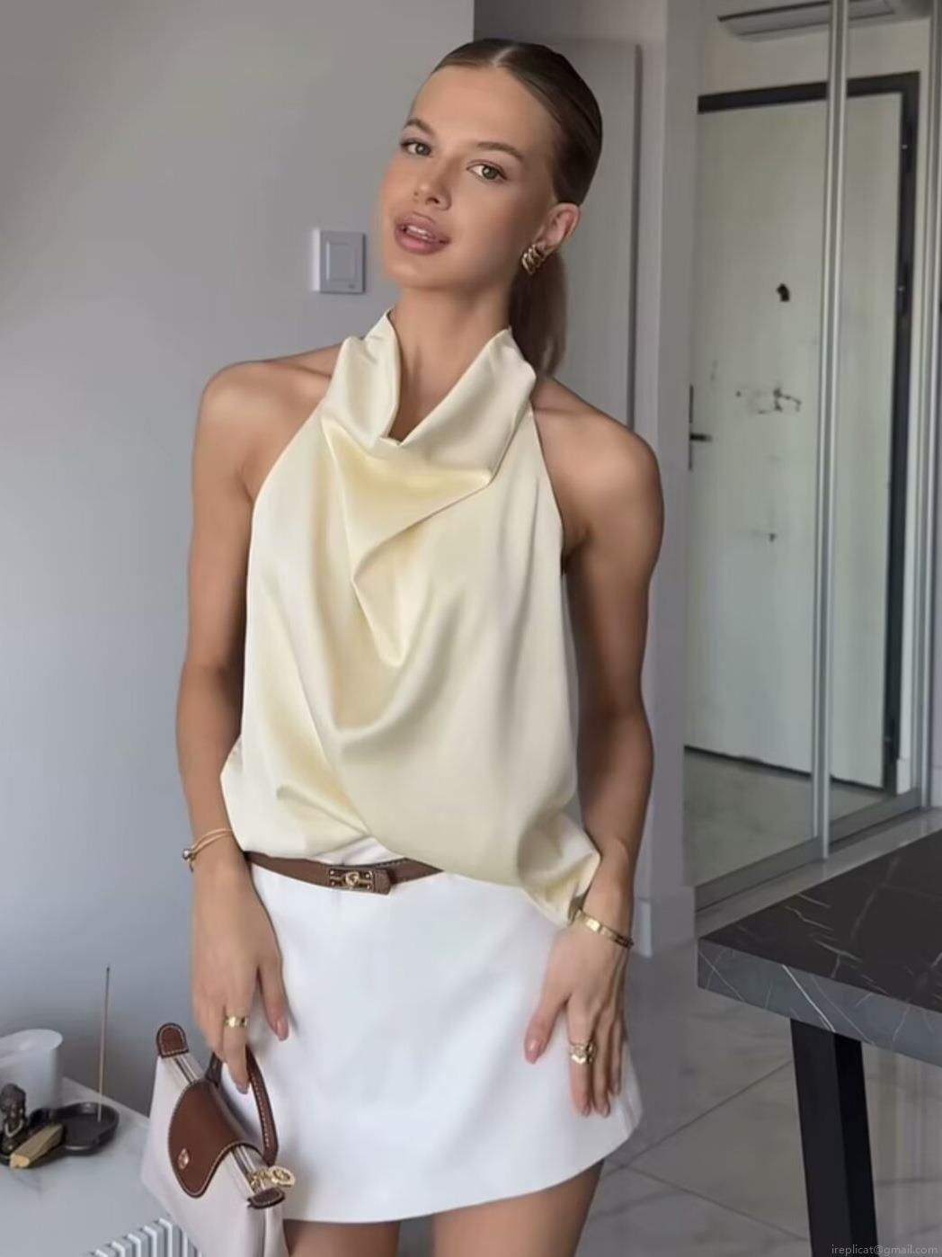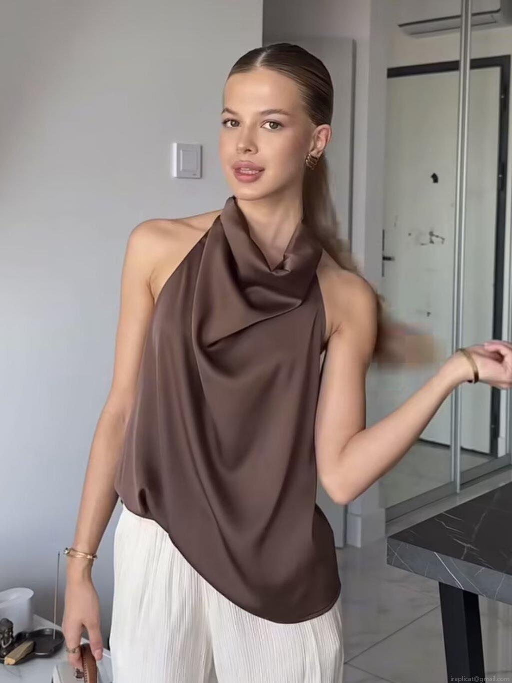 • Women Halter Neck Backless Satin Top Sexy Sleeveless Solid Color Polyester Shirt For Summer Vacation Party Elegant Streetwear Blouse