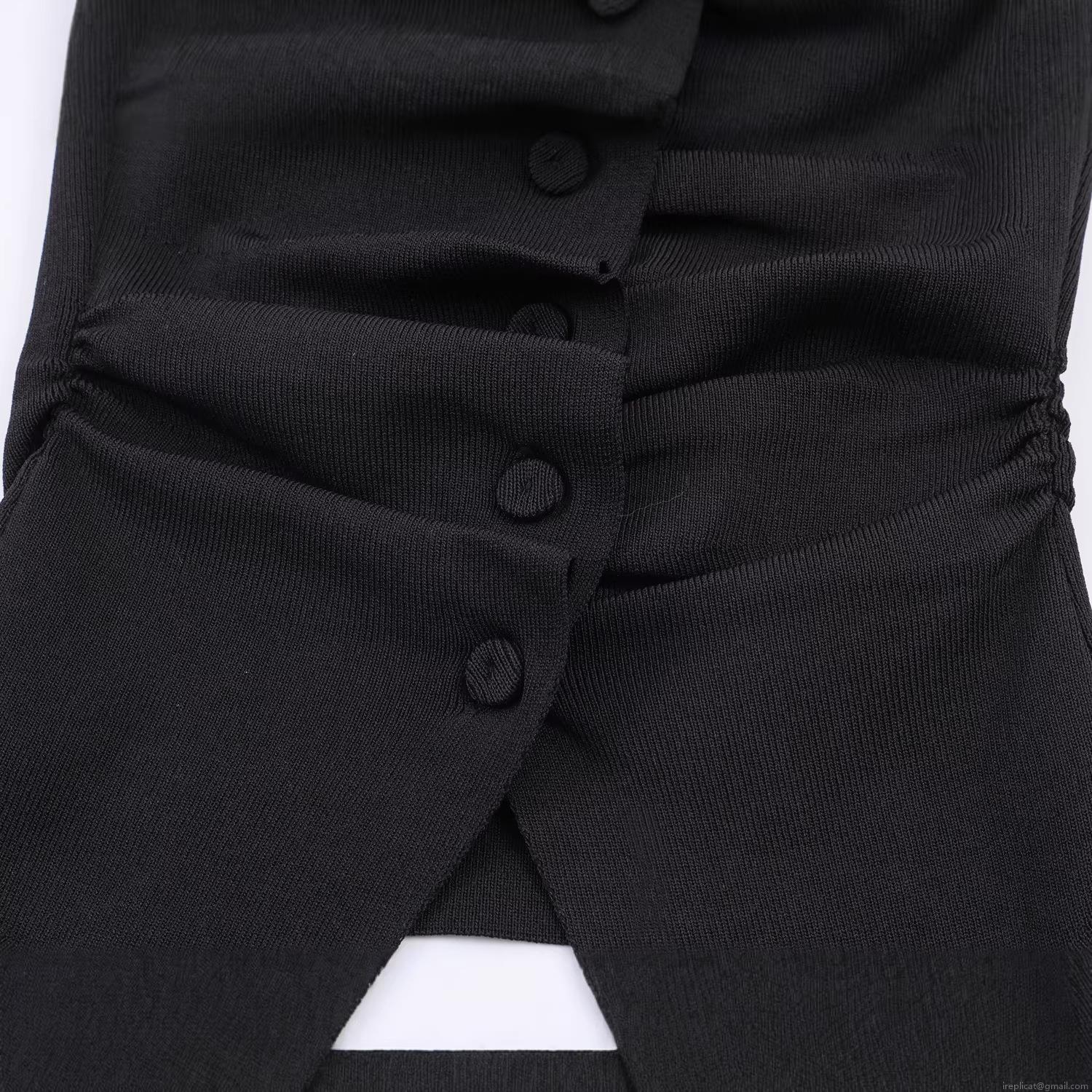 Women Halter Neck Knit T-Shirt Sleeveless V-Neck Ruched Single Breasted Irregular Hem Sexy Summer Streetwear Fashion Ribbed Slim Fit Camisole Top