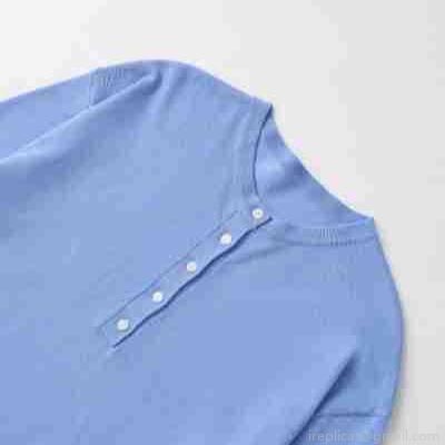 • Women Henley Neck Long Sleeve Knitted T-Shirt Polyester Loose Solid Color Button Front Top Casual Simple Soft Lightweight Spring Autumn Apparel