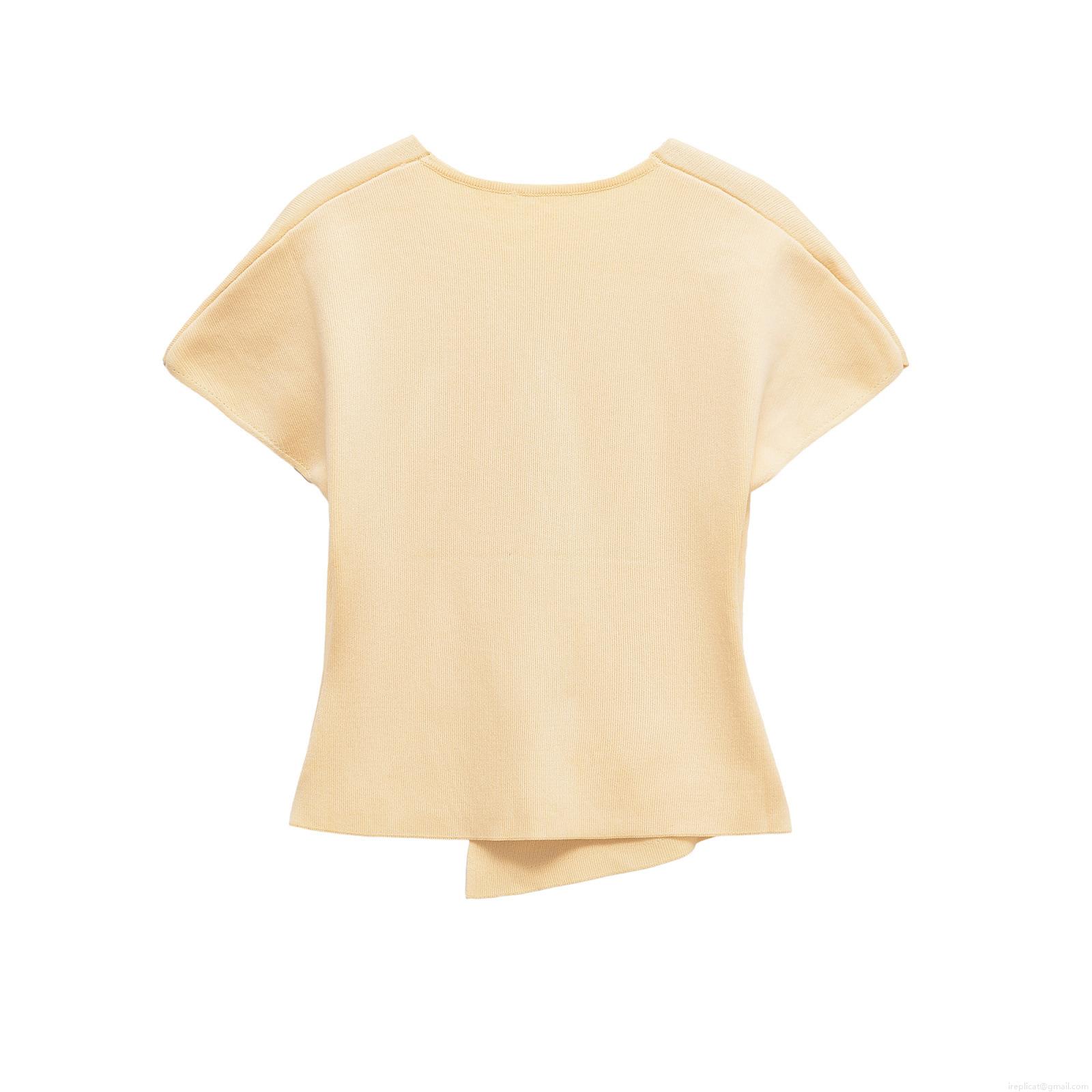 • Women Knit Cardigan Polyester Spandex Elegant V Neck Single Button Asymmetric Hem Top Minimalist Summer Short Sleeve Knitwear For Lady Casual Dating