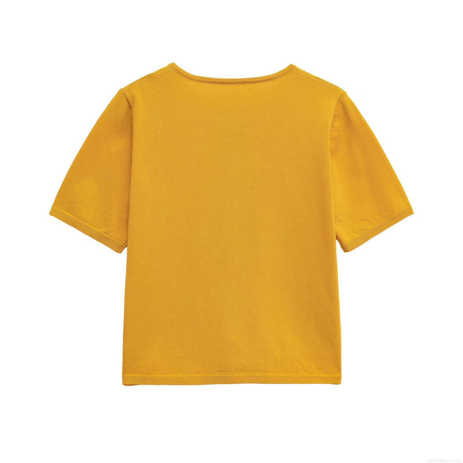 • Women Knitted Cardigan Mercerized Cotton Short Sleeve Round Neck Button Down Solid Color Casual Summer Top Minimalist Soft Lightweight Tee For Women