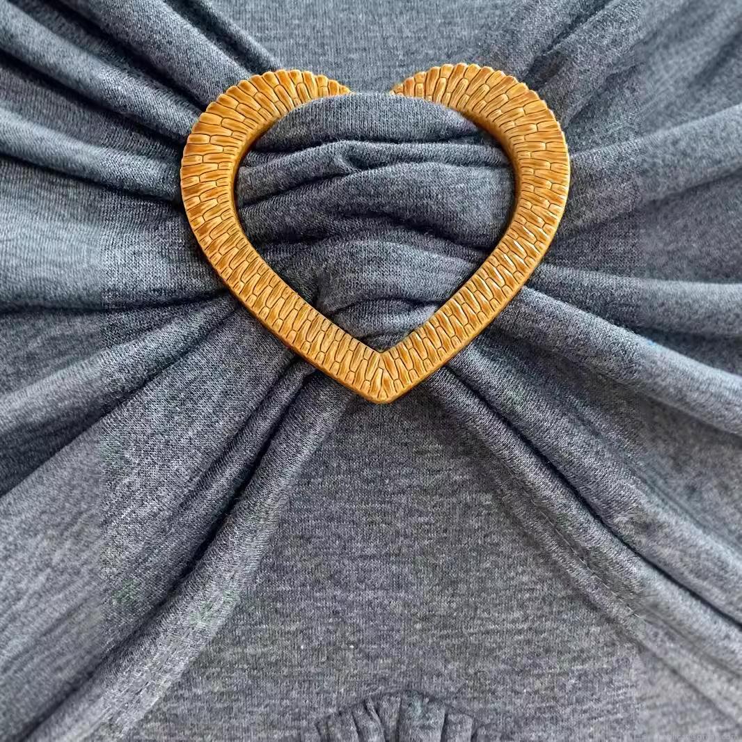 Solid Color, 3d Decoration, Heart-shaped Metal Buckle, Layered Ruffles