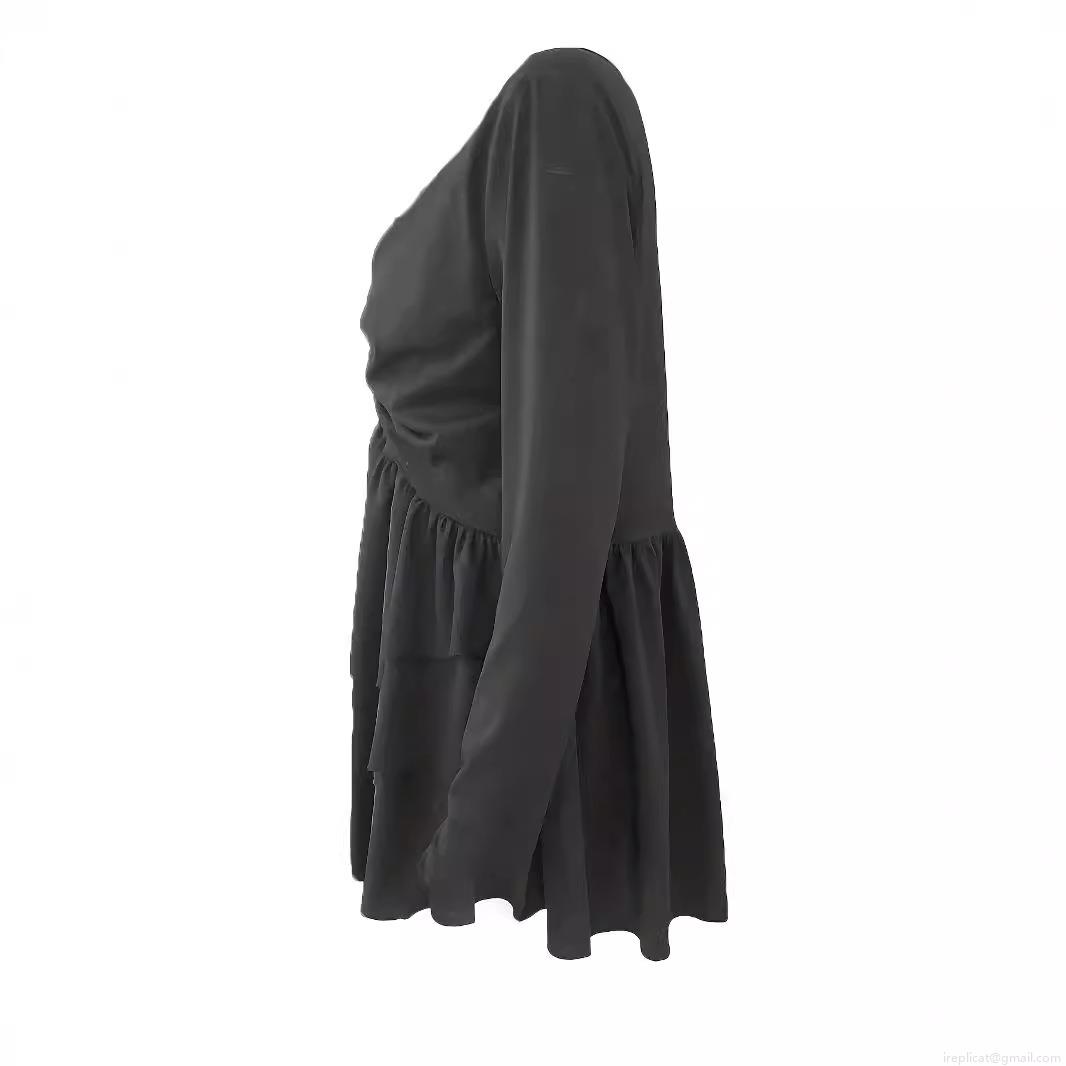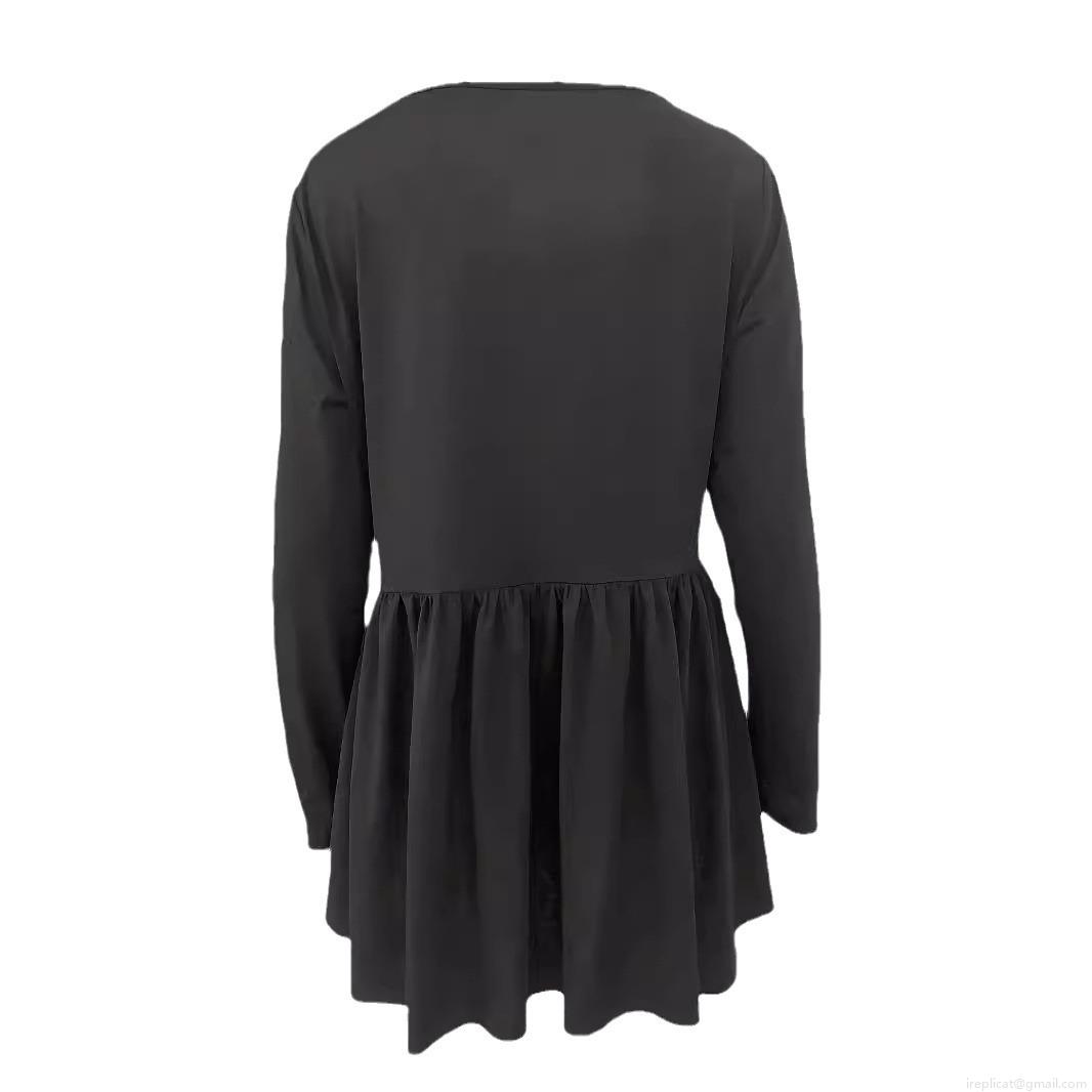 • Women Long Sleeve T-Shirt Heart Shaped Metal Buckle Tiered Peplum Hem Round Neck Solid Color Casual Fit Top For Spring Autumn