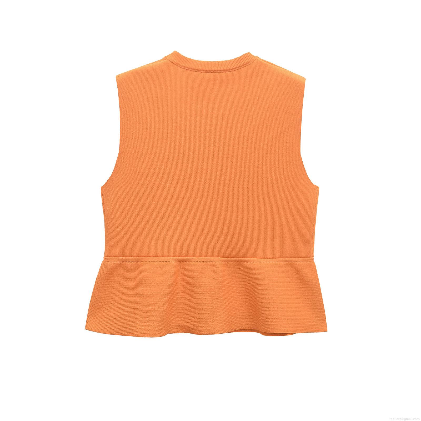 • Women Mercerized Cotton Knit Peplum Top Round Neck Sleeveless Ruffled Hem Solid Color Summer Casual Knitwear Tank Top Blouse For Women