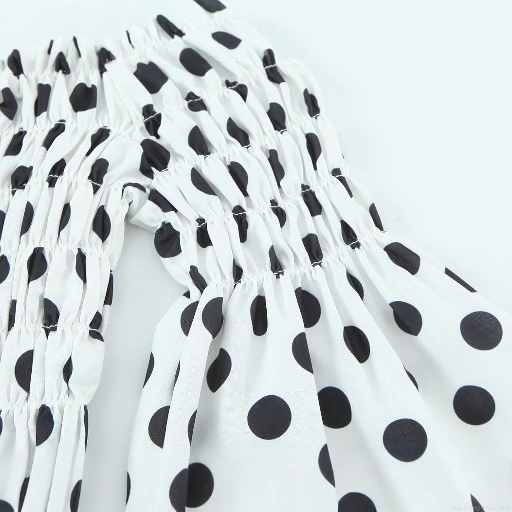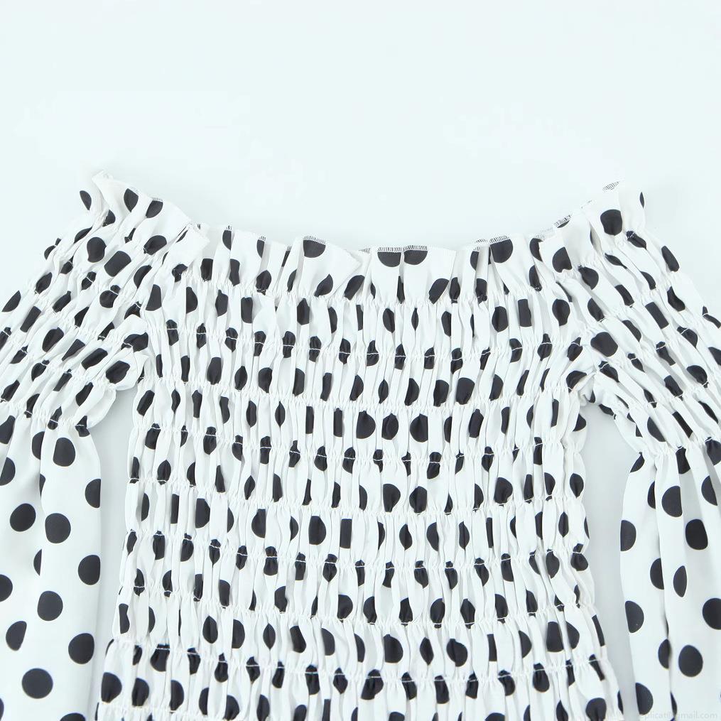 Splice, Polka Dots, Pleats, Ruffles, Collage, Slab, Off-the-shoulder Neckline, Smocking