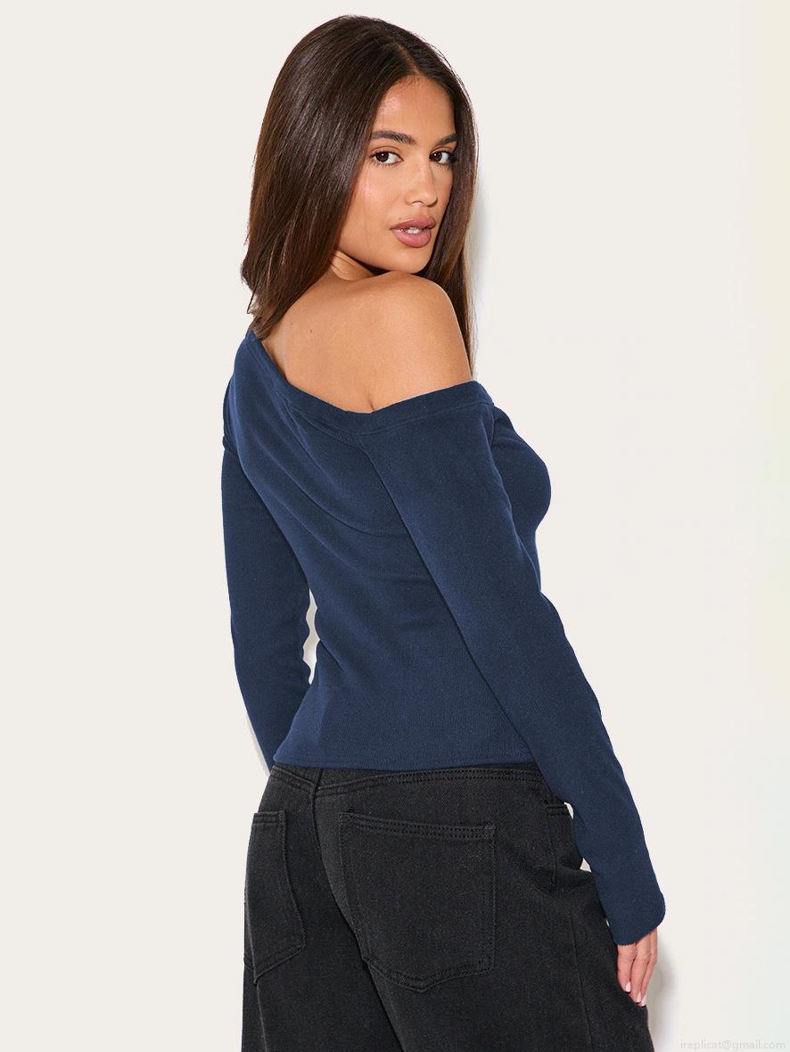 • Women One Shoulder Long Sleeve Button Ribbed Knit T-Shirt Slim Fit Asymmetric Neck Pullover Top Y2K Sexy Style Solid Color Viscose Blouse For Casual Dating Autumn