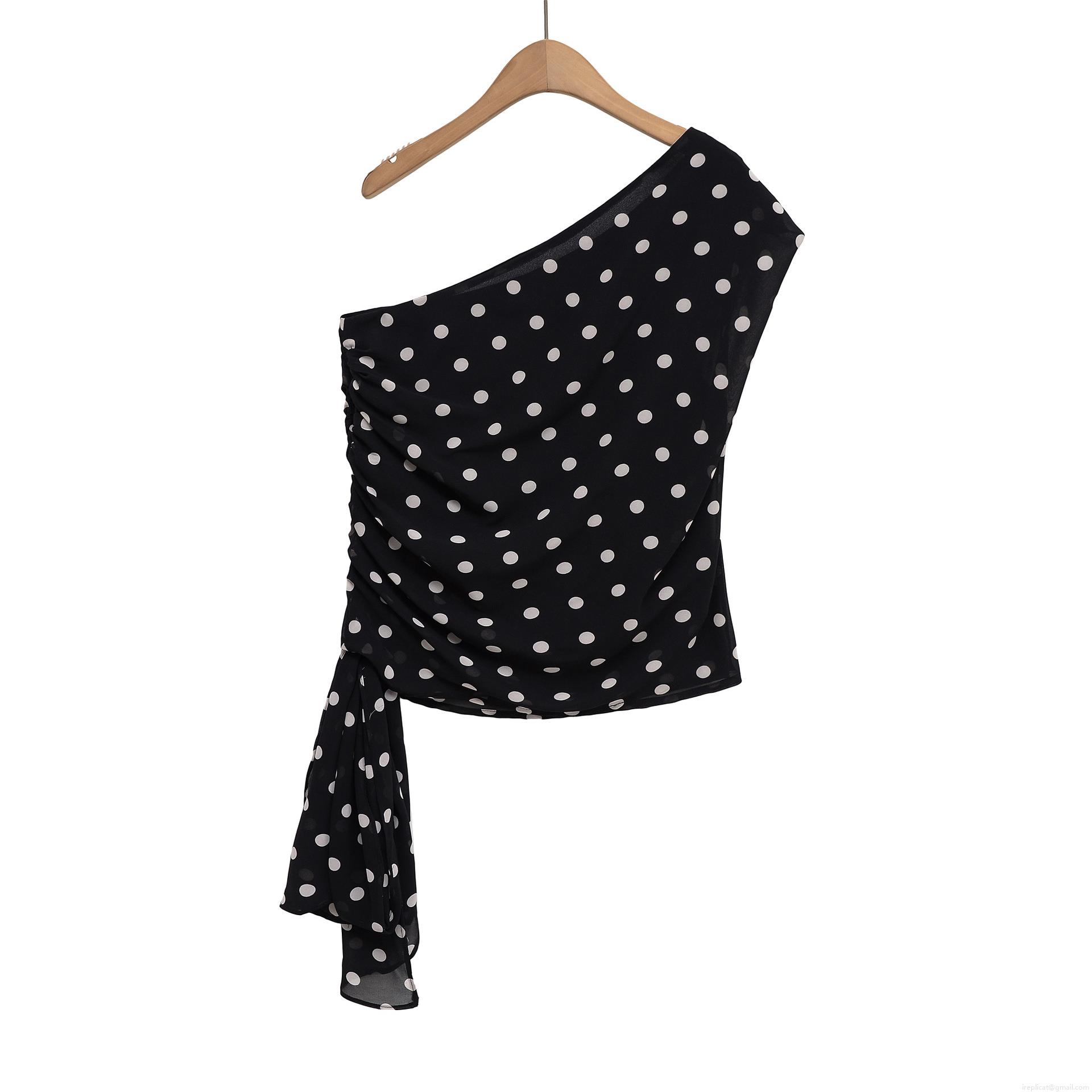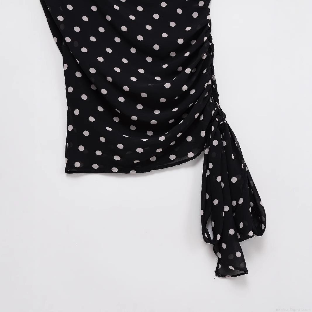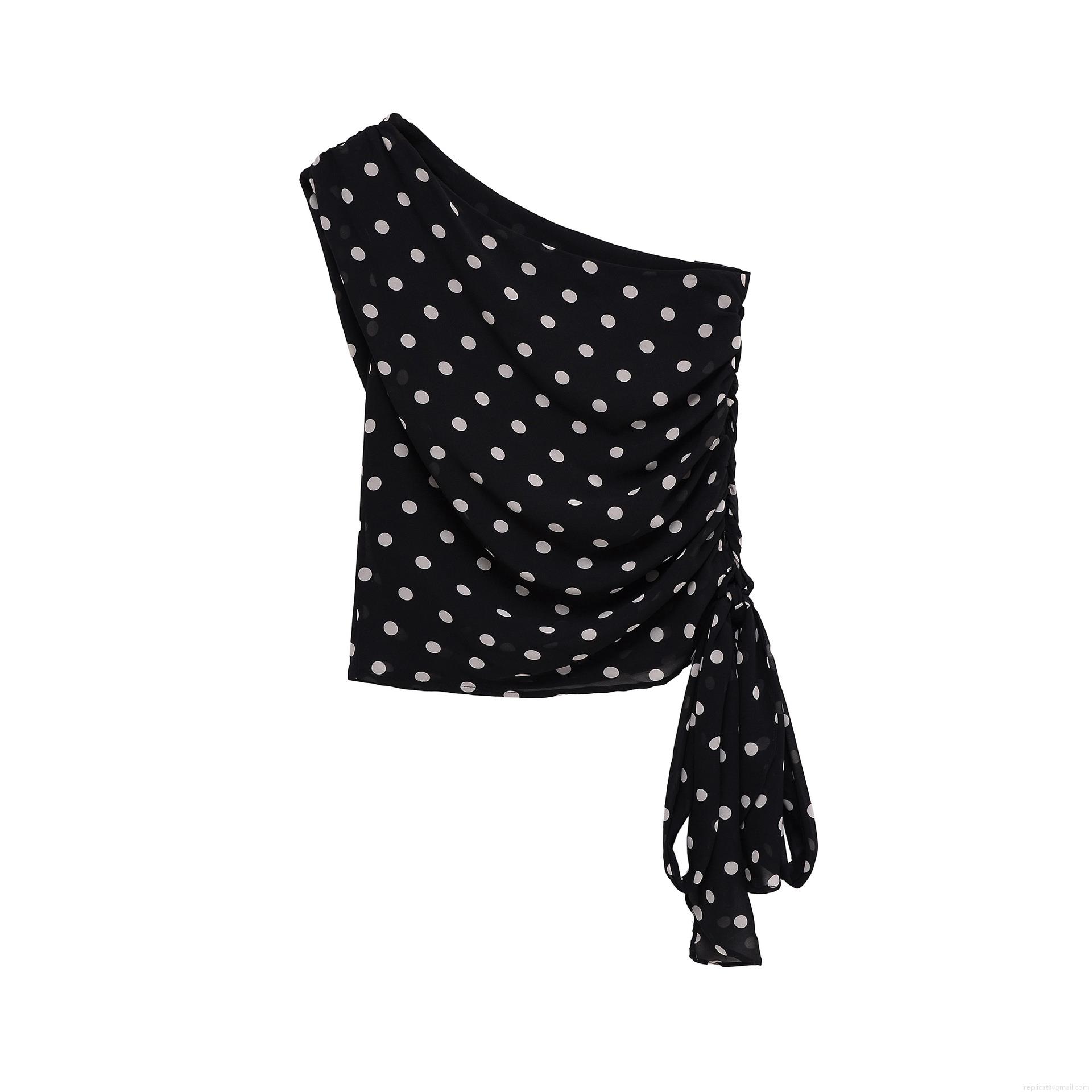 • Women One Shoulder Polka Dot Top Ruched Side Tie Drawstring Polyester T-Shirt Summer Streetwear Casual Sleeveless Blouse For Party Daily Wear