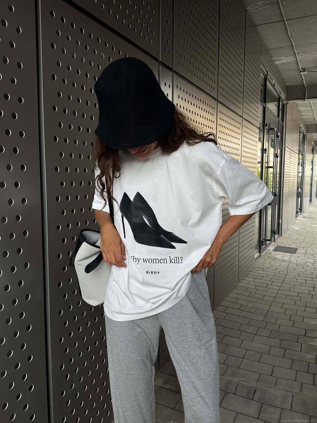 Women Oversized T-Shirt 95% Cotton High Heel Graphic Print Round Neck American Retro Streetwear Summer Short Sleeve Loose Top