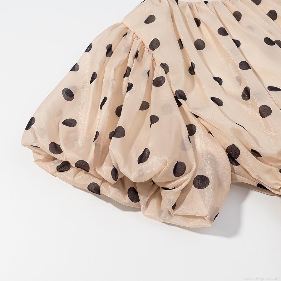 Black Polka Dots, Pleats, Ruffles, Waist shaping, Puff Sleeves
