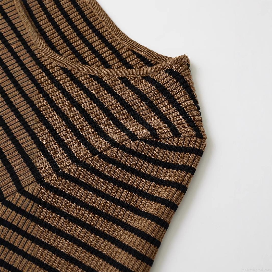 • Women Round Neck Short Sleeve Striped T-Shirt Casual Mercerized Cotton Rib Knit Slim Fit Tee Top For Summer Streetwear Khaki Black Retro Style Elastic Breathable Women's Top