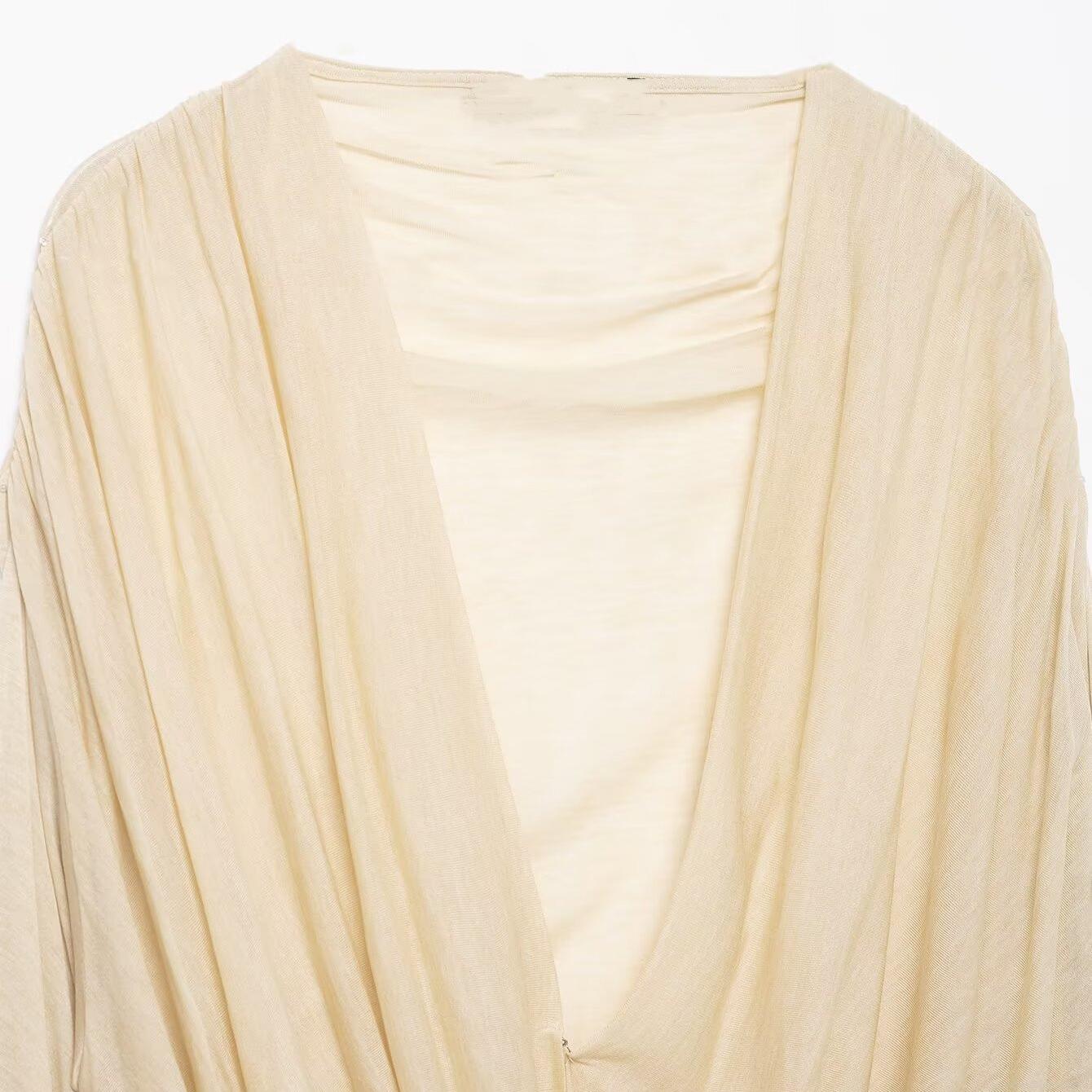 Solid Color, Pleats, V-neck, Gathering, Dangling
