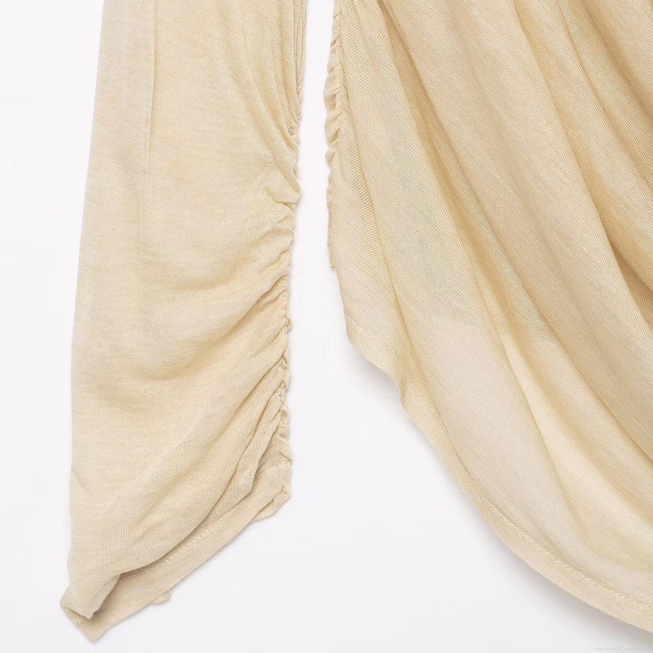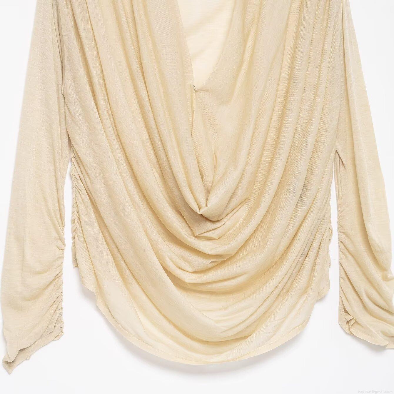 • Women Sexy Drape Neck Long Sleeve Top Pleated Ruching Slim Fit Solid Color Polyester Spandex Blouse For Daily Party Commuting Elegant Fashion Tee