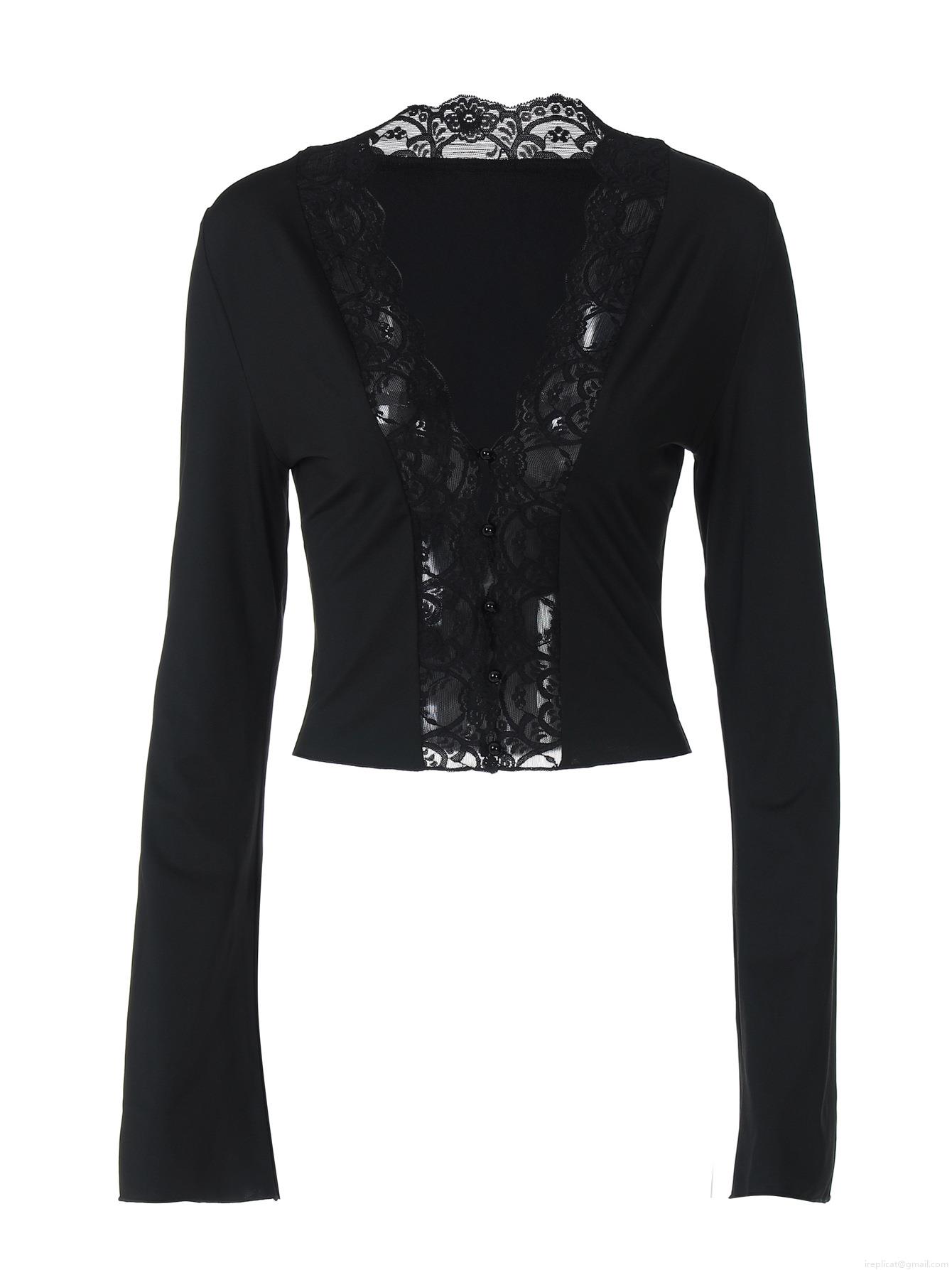 • Women Sexy Lace Patchwork V Neck Crop Top Long Sleeve Button Up T-Shirt Slim Fit Rib Knit Cardigan Streetwear For Dating Party Blouse