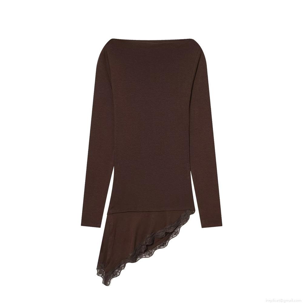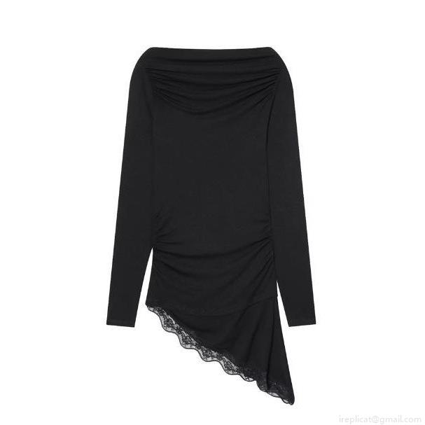 • Women Sexy Off Shoulder Long Sleeve Top With Asymmetric Lace Hem Ruched Polyester Slim Fit T-Shirt Blouse For Women Chic Streetwear