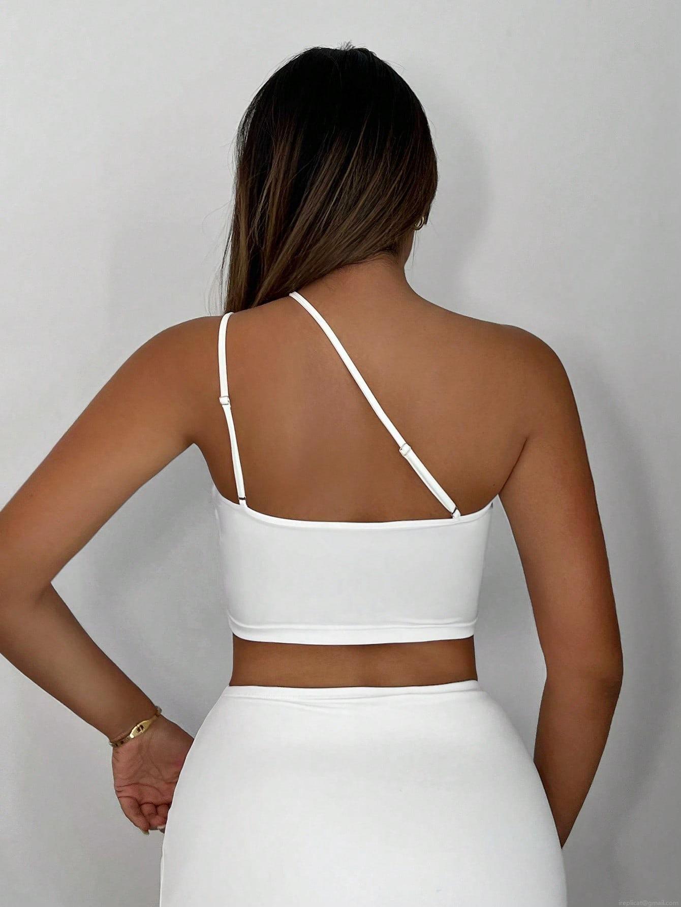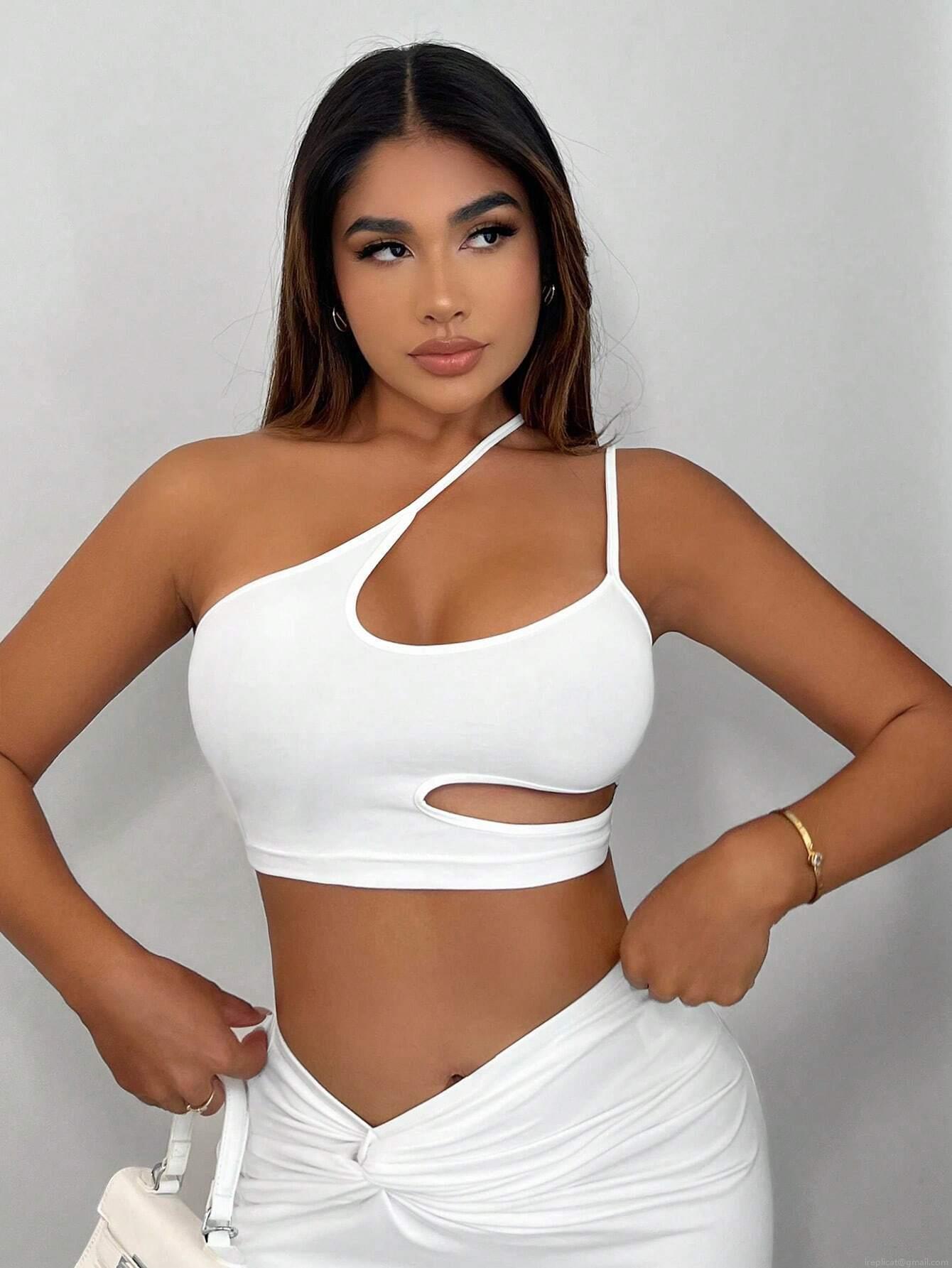 • Women Sexy One Shoulder Cropped Top Asymmetric Cut Out Sleeveless T-Shirt Cotton Blend High Stretch Summer Party Clubwear Slim Fit Plain Color Halter Neck Vest Top