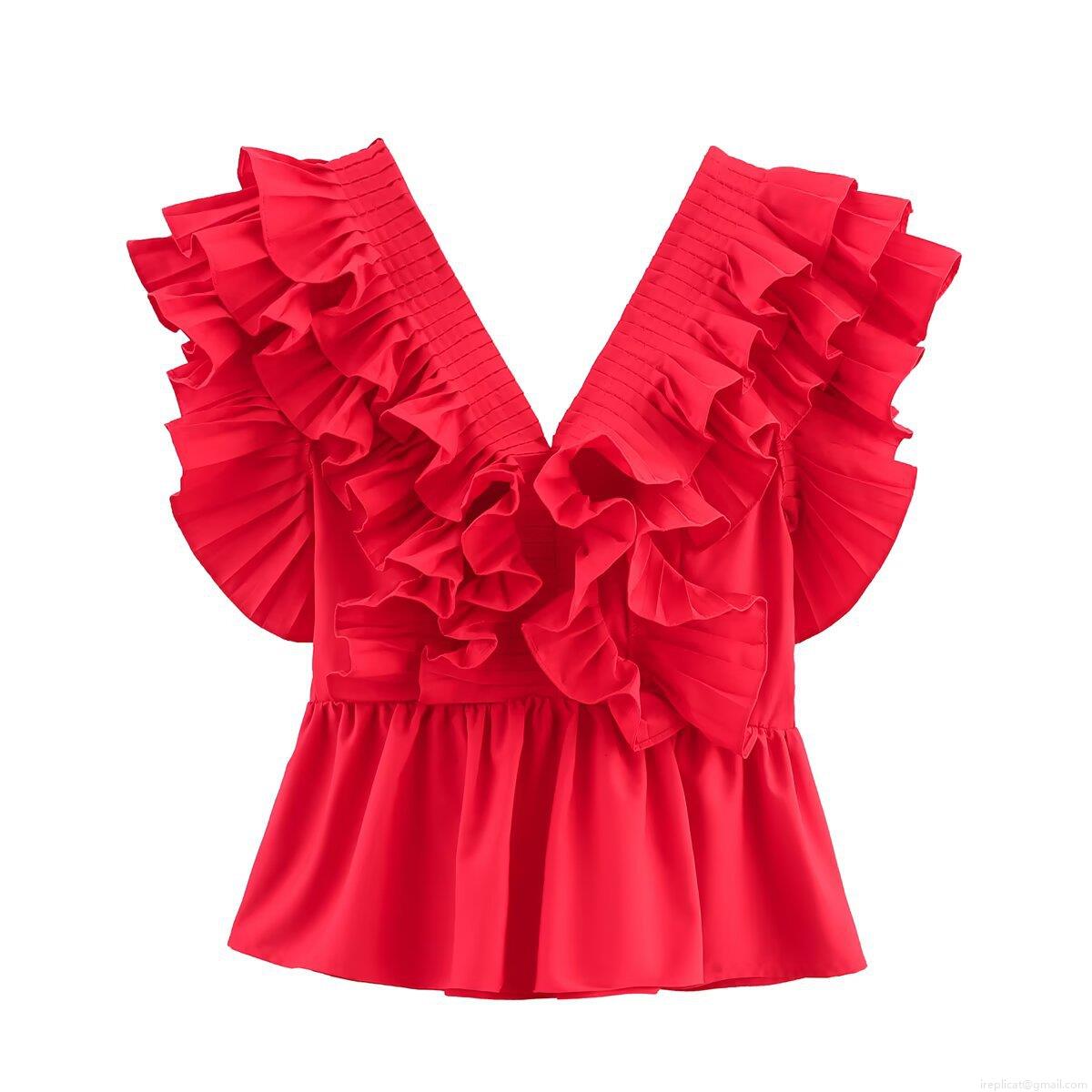 • Women Sexy V-Neck Ruffle Sleeveless Peplum Top 100% Polyester Pleated Waist-Tightening Summer Patchwork Tank Top For Women Daily Party Streetwear