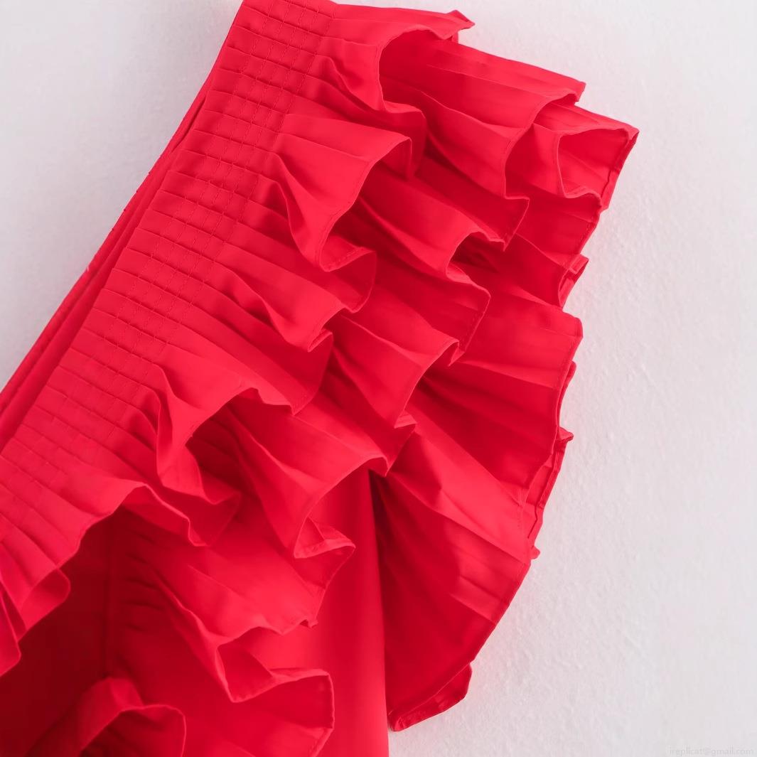 Solid Color, Splice, Ruffles, Pleats, Peplum