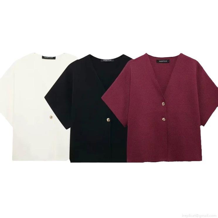 • Women Sexy V-Neck Short Sleeve Cardigan Top Polyester Ice Linen Blend Button Down Casual Summer T-Shirt Slim Fit Blouse Daily Wear