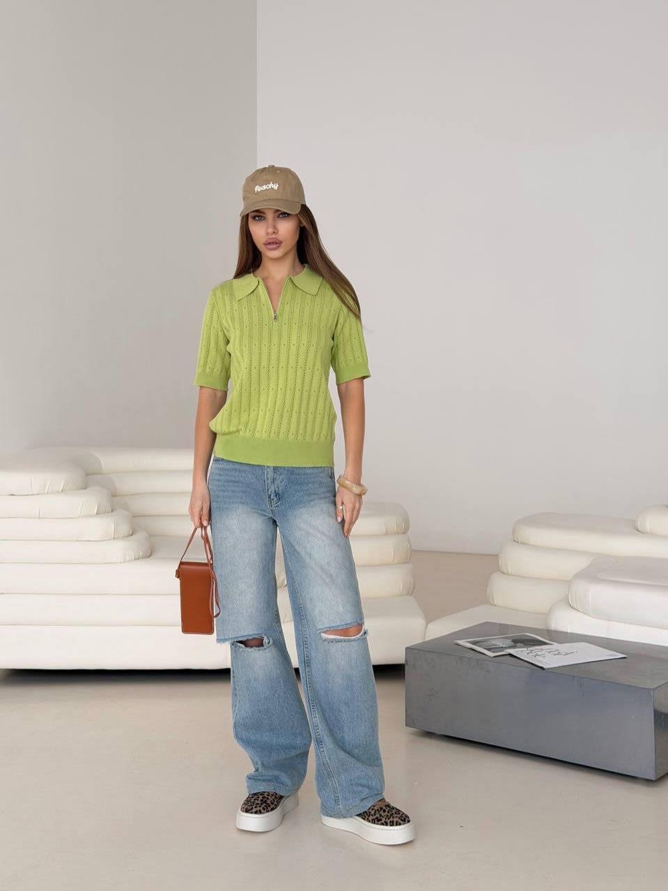 • Women Short Sleeve Knit Polo Shirt Half Zipper Hollow Out Jacquard Top Summer Casual Commuter Sexy Style Cotton Blend T-Shirt for Women Ladies