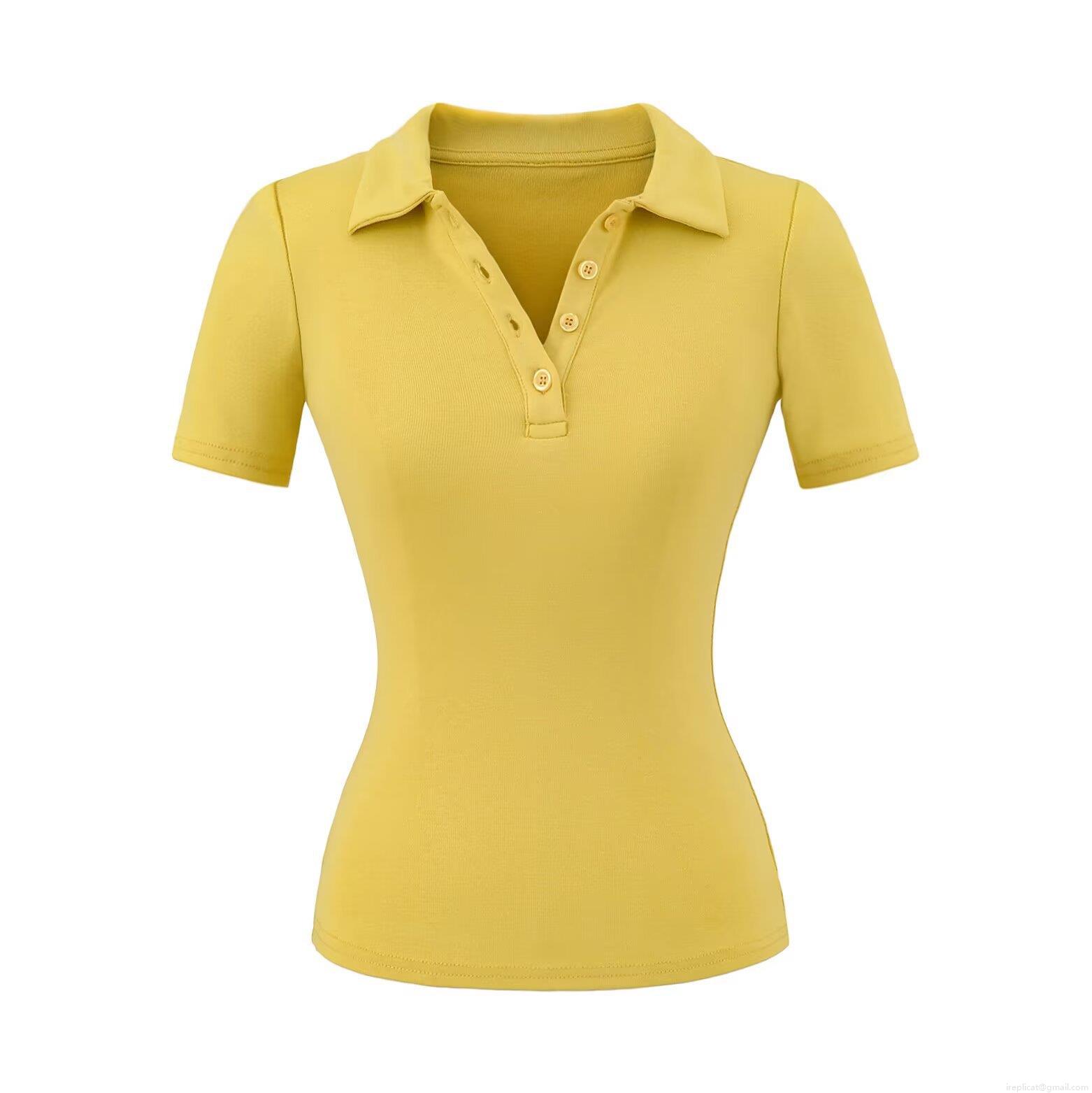 • Women Slim Fit Polo T-Shirt Short Sleeve Viscose Elastane Ribbed Knit Top Solid Color Button Down Lapel Shirt Casual Modern Streetwear For Women