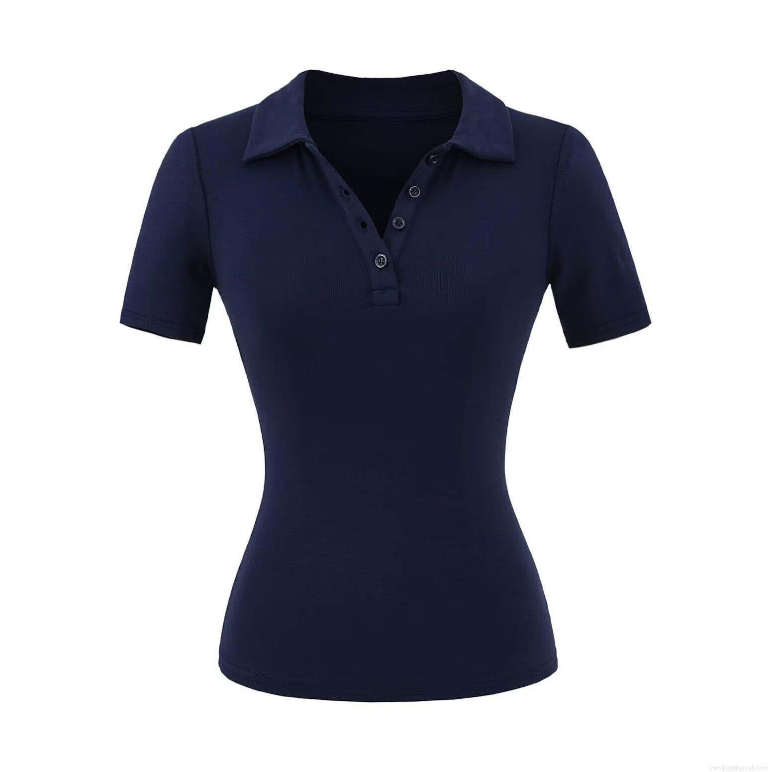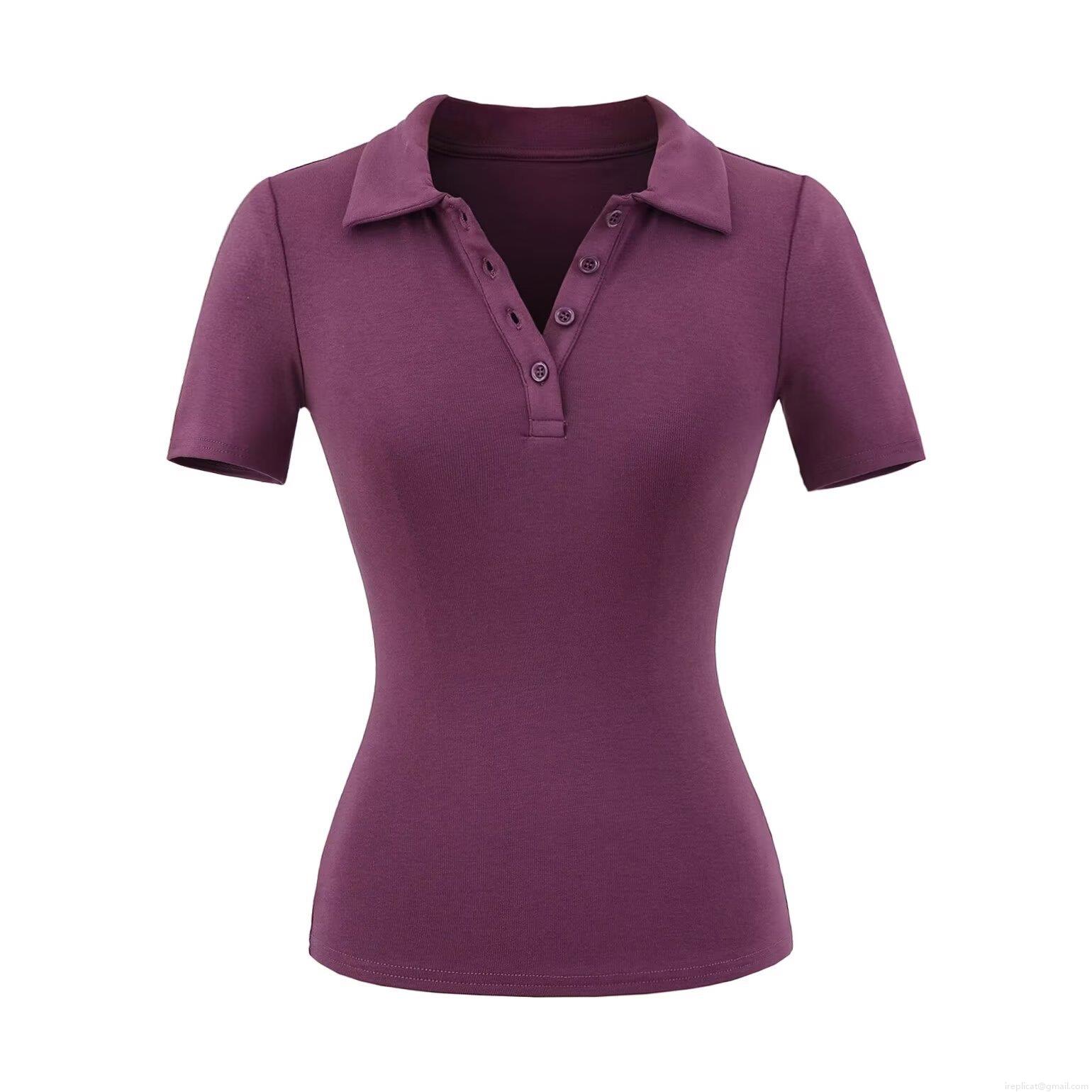 Women Slim Fit Polo T-Shirt Short Sleeve Viscose Elastane Ribbed Knit Top Solid Color Button Down Lapel Shirt Casual Modern Streetwear For Women