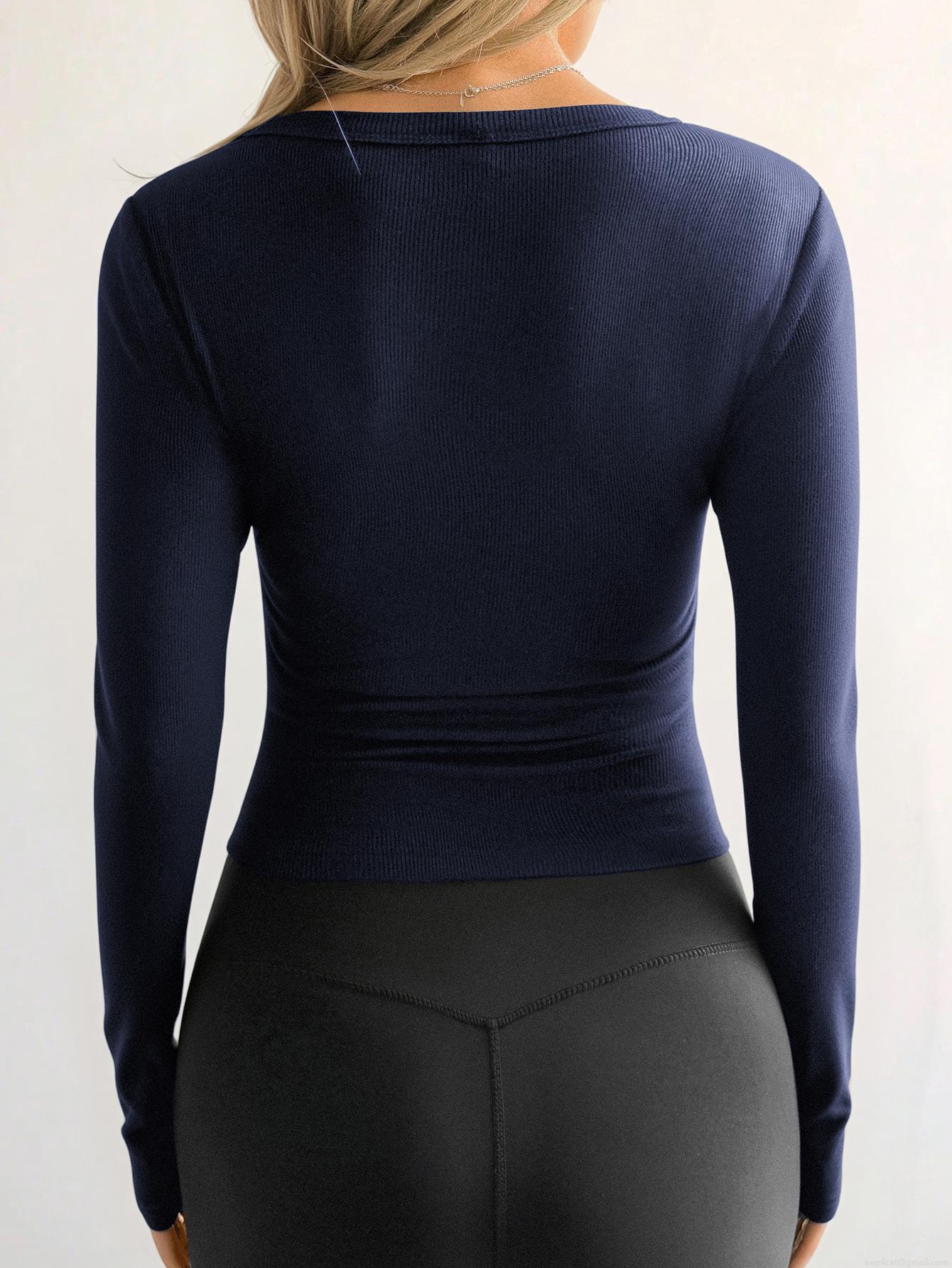 • Women Slim Fit Ribbed Knit Top V-Neck Long Sleeve Casual T-Shirt Solid Color Viscose Spandex Elastic Basic Tee Soft Breathable Undershirt