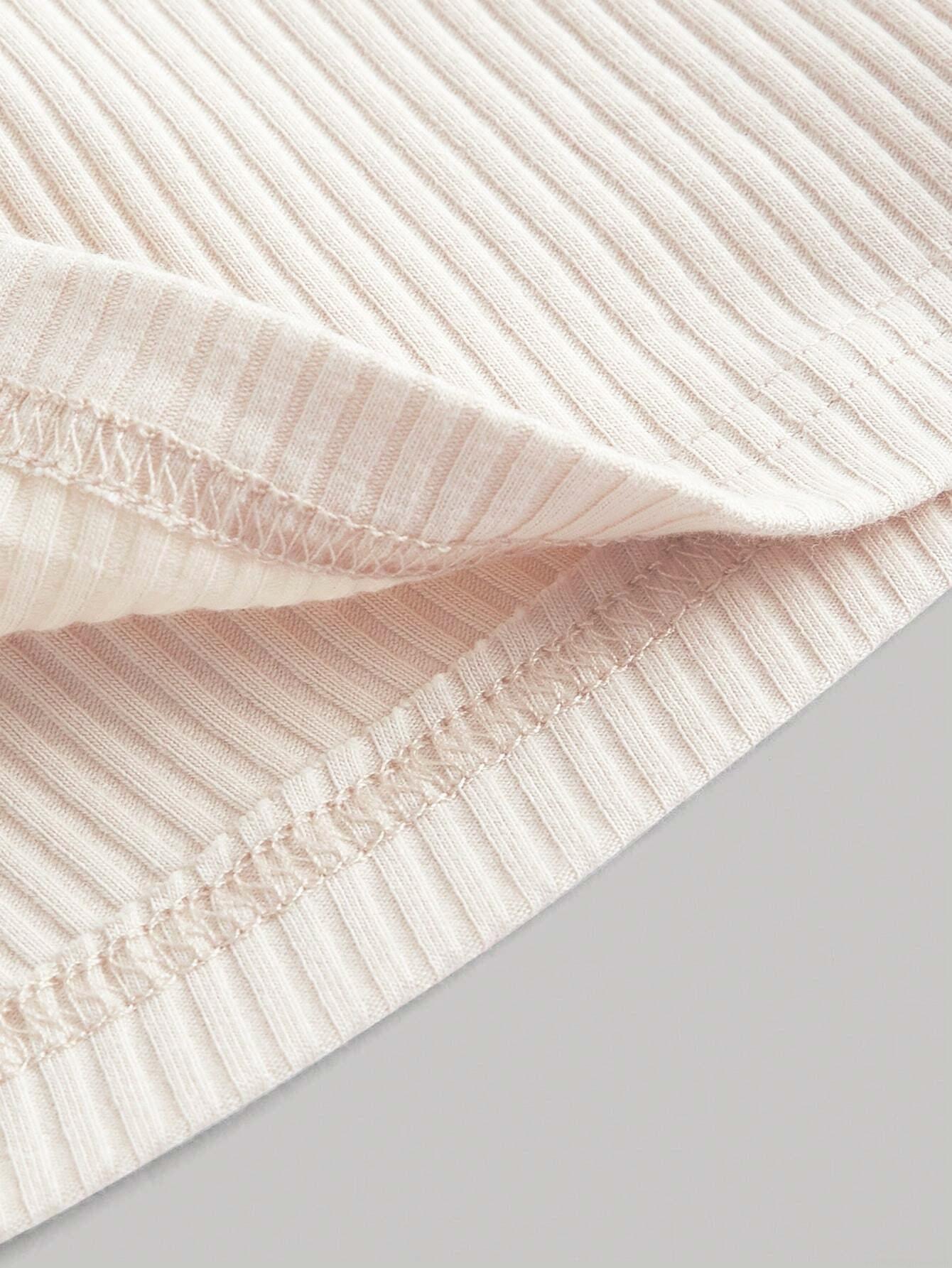 Solid Color, Pleats, Drawstring, Lace, Ribbed Knit, Square Collar