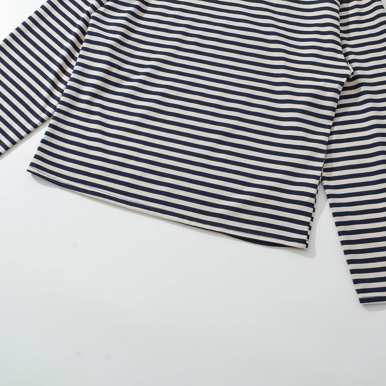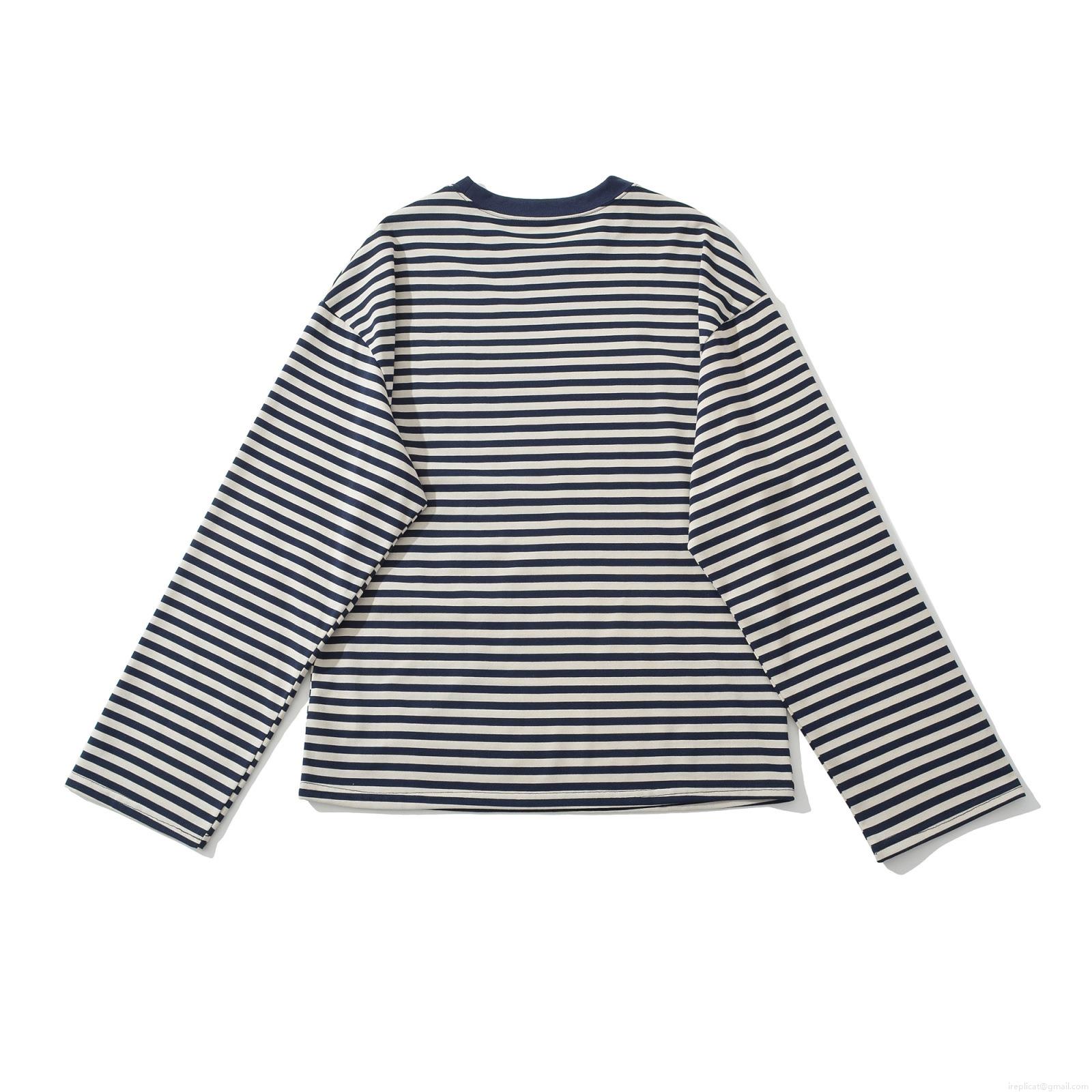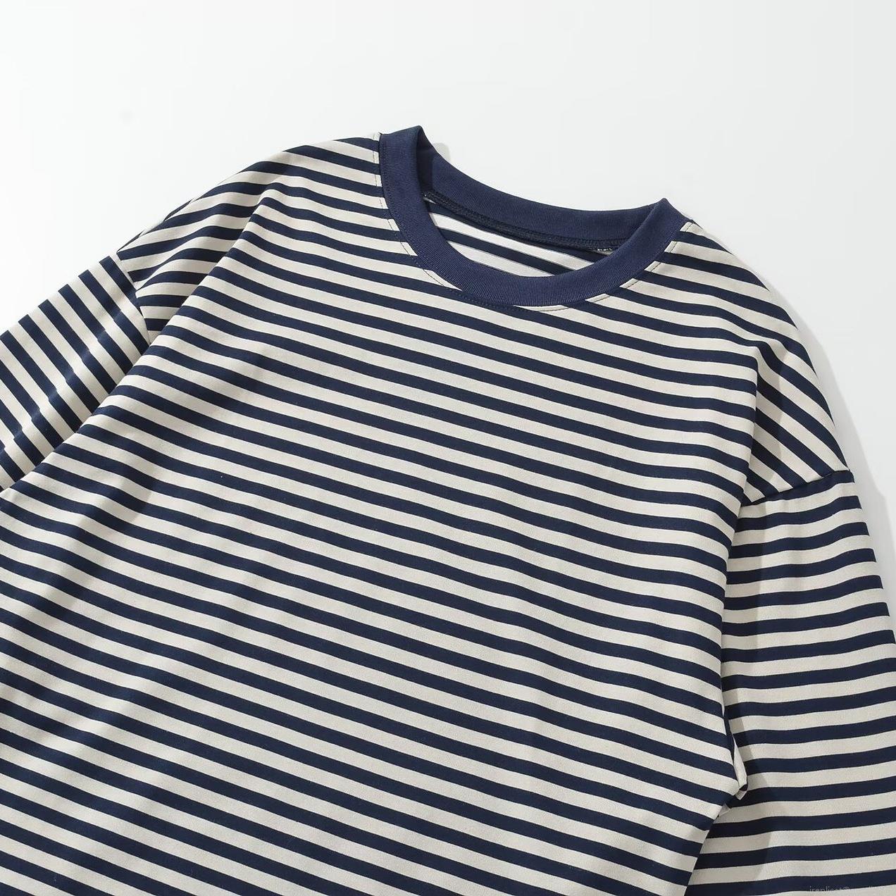 • Women Striped Long Sleeve T-Shirt Cotton Blend Loose Fit Round Neck Casual Pullover Top For Daily Wear Chic Korean Style