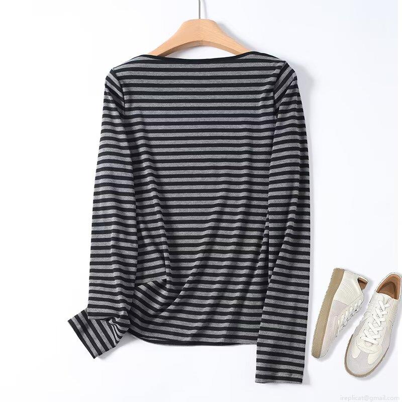 Women Striped Long Sleeve T-Shirt Rayon Polyester Blend Boat Neck Casual Loose Pullover Top Autumn Winter Soft Breathable Shirt Ladies