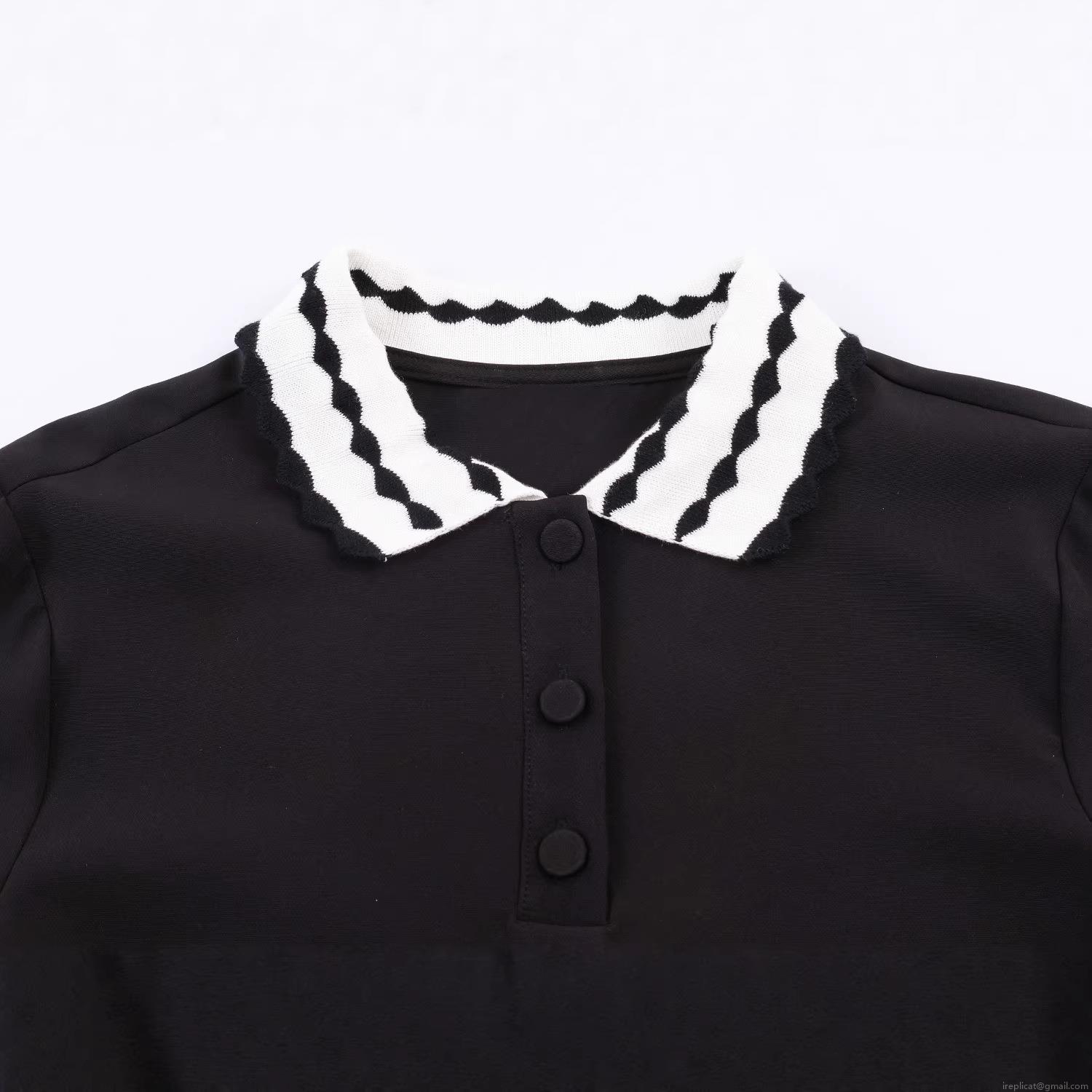 Black And White Color Blocking, Fan-shaped Edge Collar And Cuffs