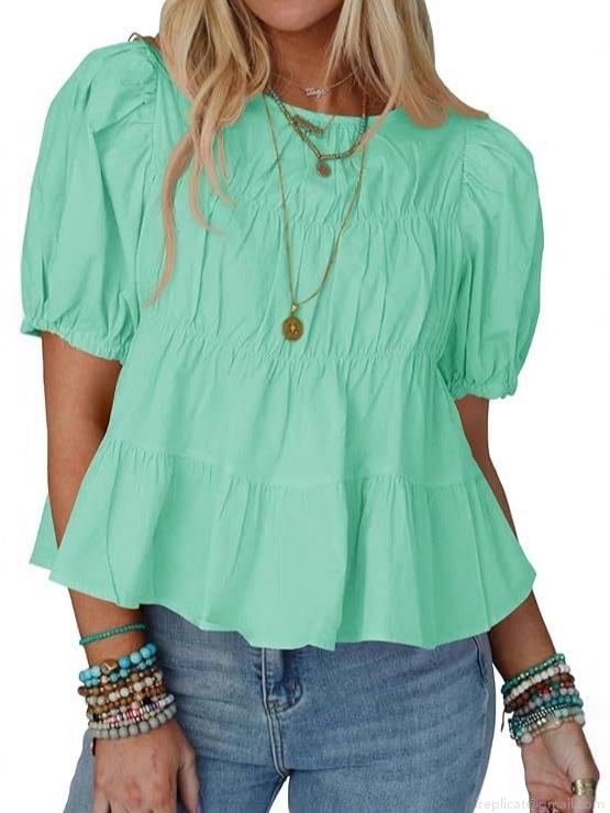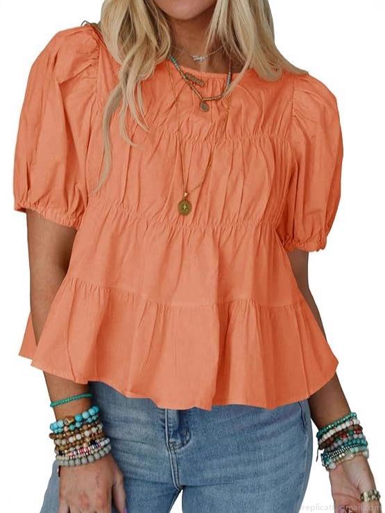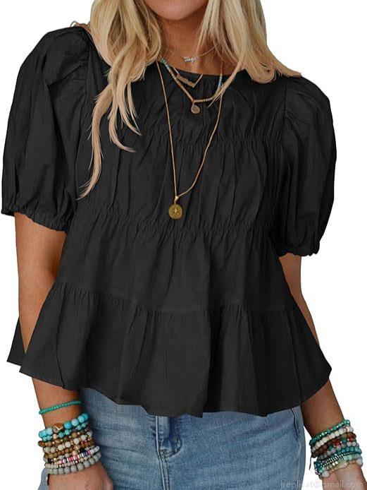• Women Sweet Puff Sleeve Babydoll Top Casual Loose Ruffle Short Sleeve T-Shirt Summer Solid Color Tiered Pleated Blouse For Women