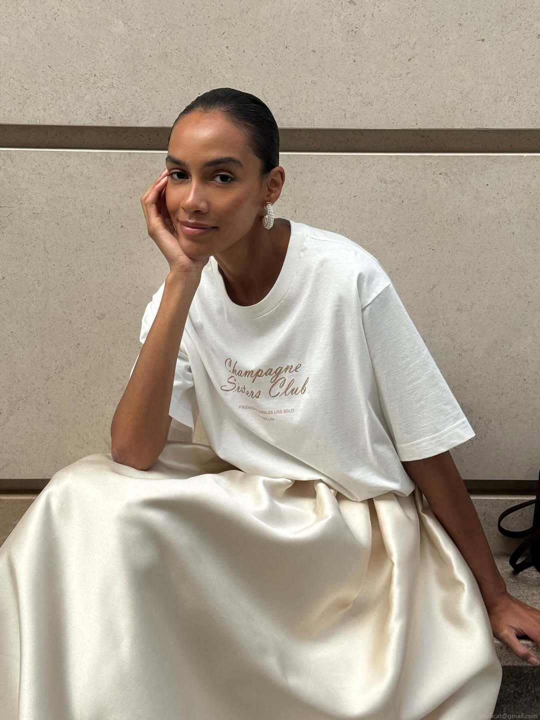 • Women Vintage Streetwear T-Shirt 95% Cotton Letter Print Champagne Sisters Club Short Sleeve Round Neck Oversized Summer Casual Top Women Y2K Style