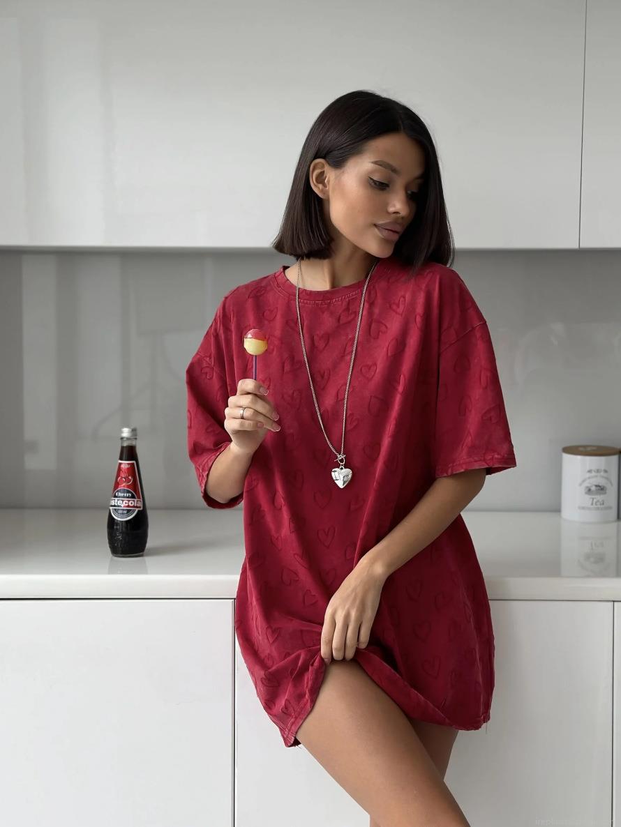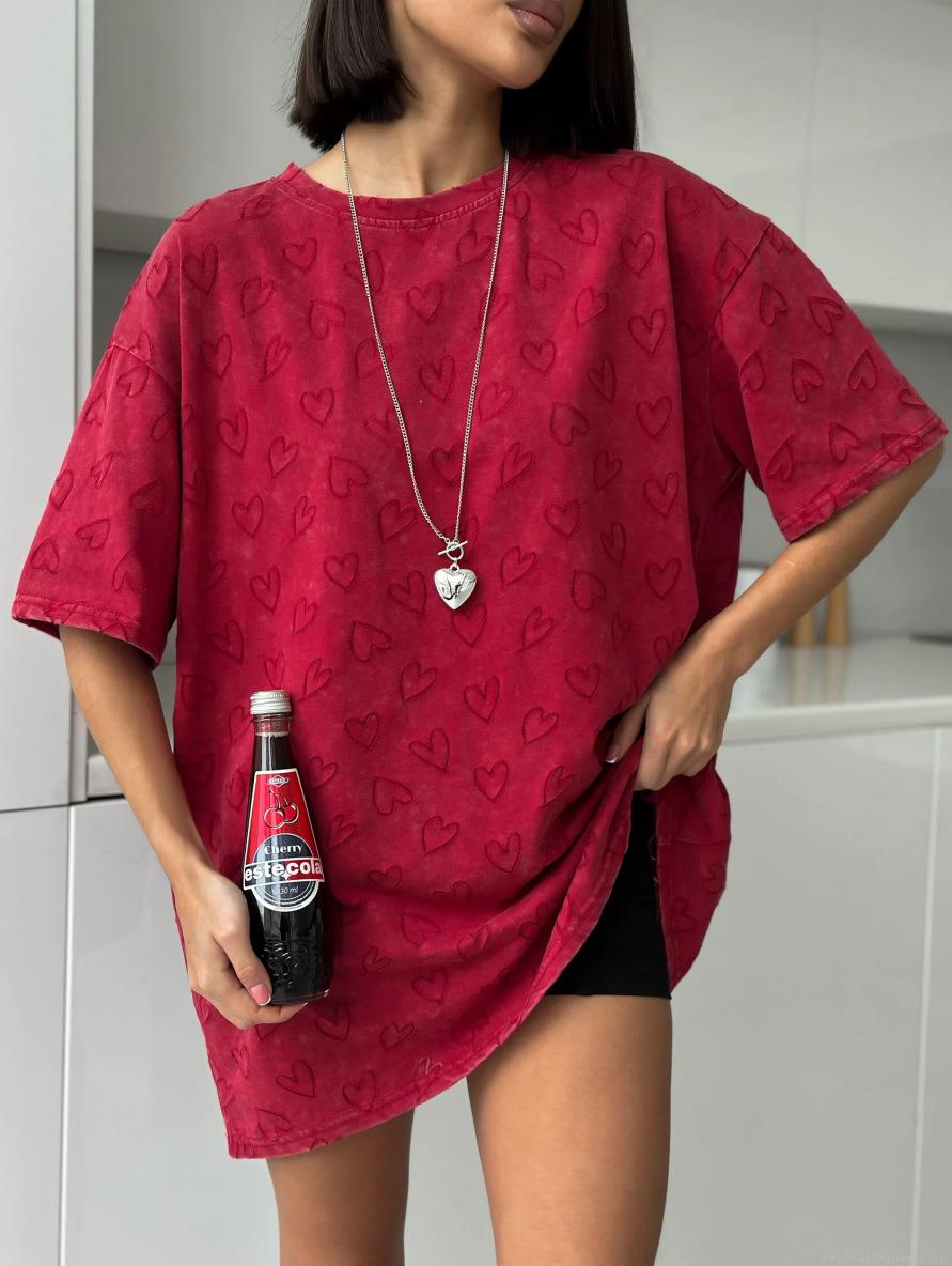 • Women's 100% Cotton Oversized T-Shirt Heart Embossed Jacquard Crew Neck Short Sleeve Casual Loose Summer Top