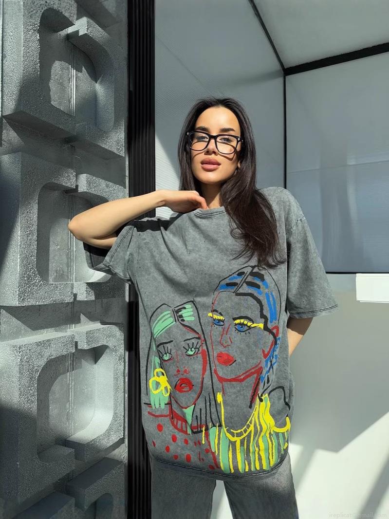 Figure, Abstract Portrait, Artistic Prints, Oversized Silhouette, Acid Washing And Aging, Dropped Shoulders